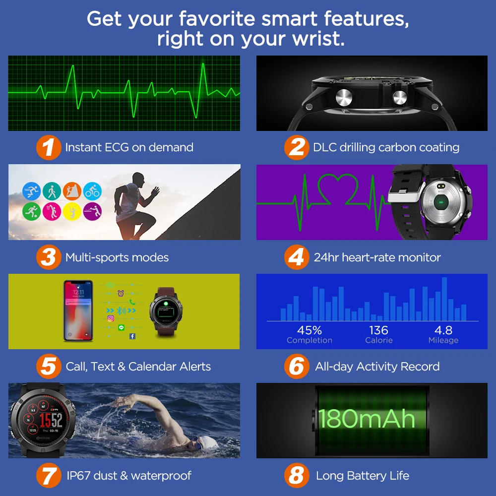 All-day activity tracking, Multi-sensors, Mobile alerts, Pedometer,