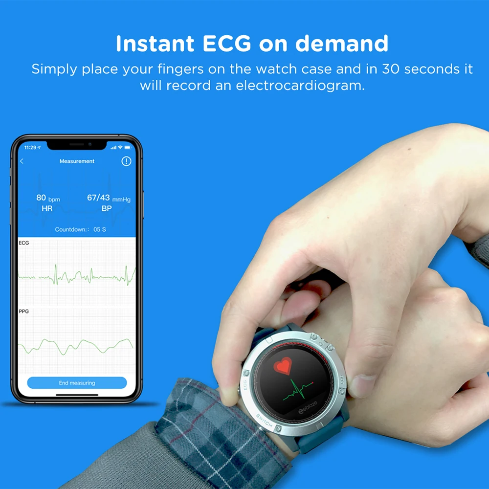 3.Simply place your fingers on the watch caae and in seconds it will record an electrocardiogram.