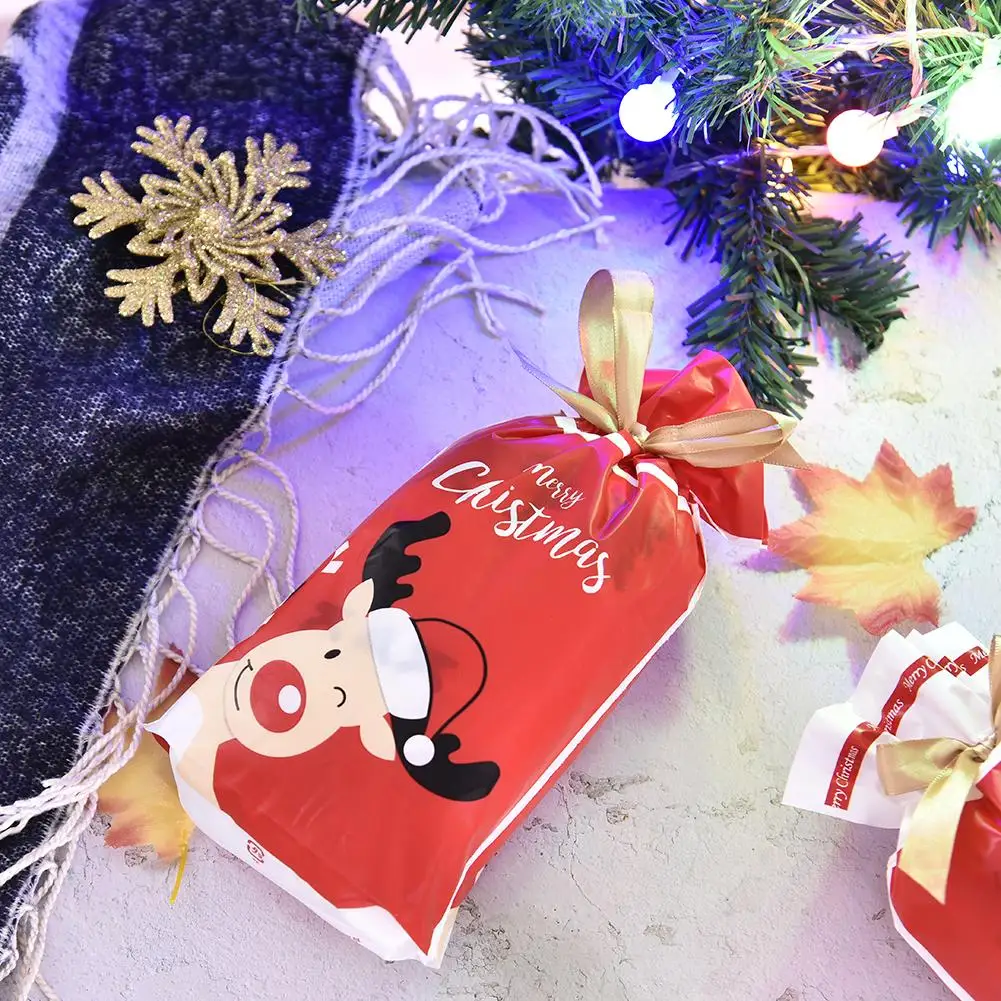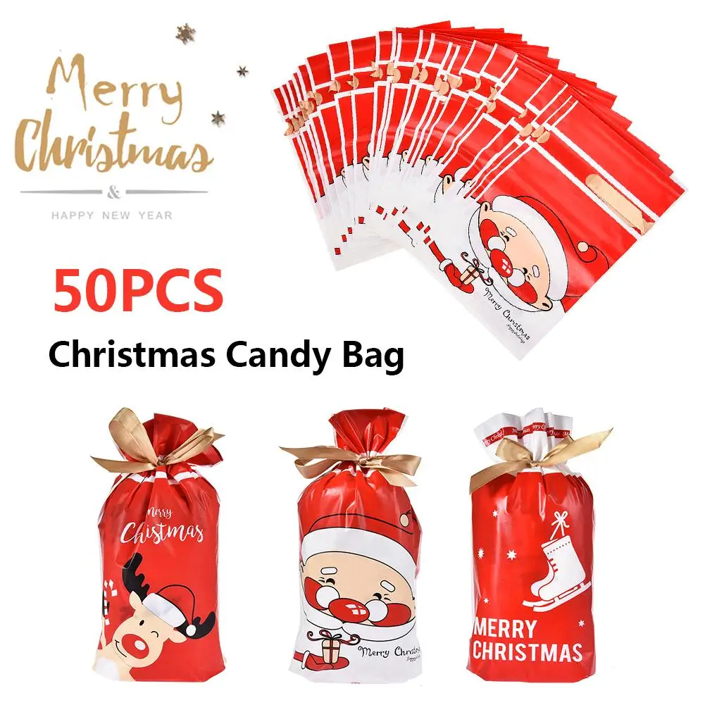50 шт рождественские на шнурке конфетные пакеты 5,91x9,25 дюймов милый конфетный пакет карман с лентой для новогоднего подарка