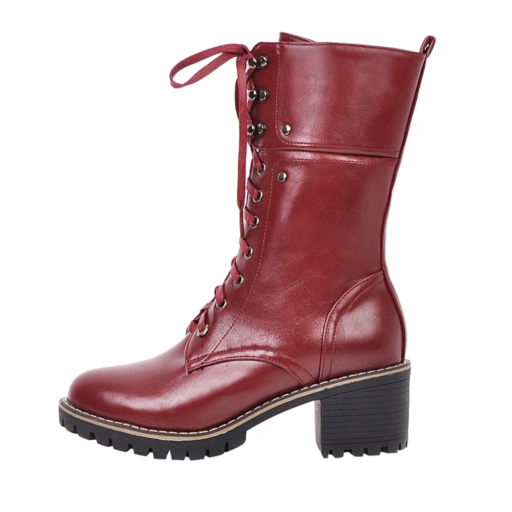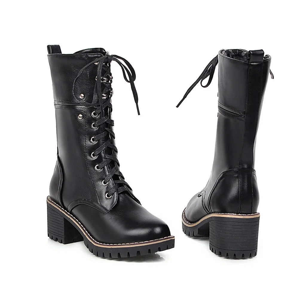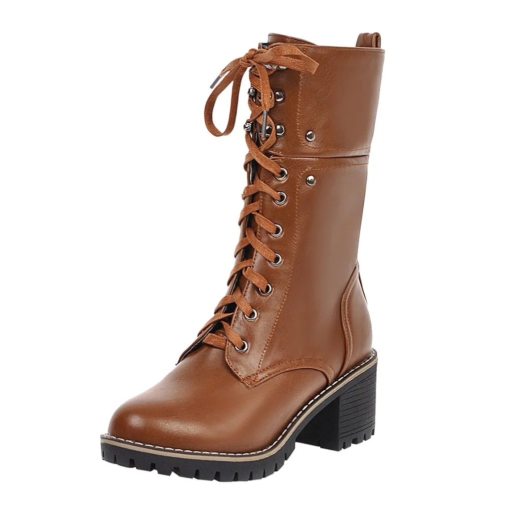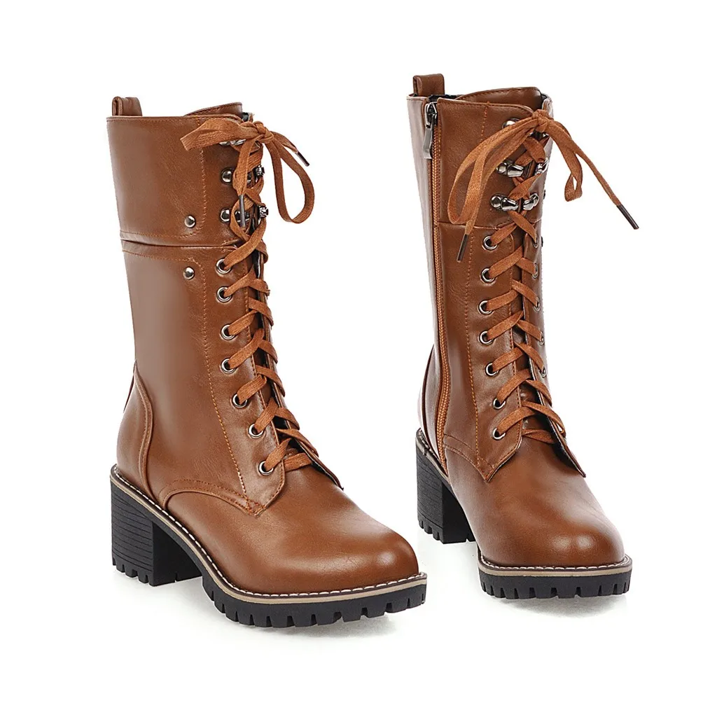 Женские ботильоны на молнии со шнуровкой; повседневные ботинки средней длины на высоком квадратном каблуке