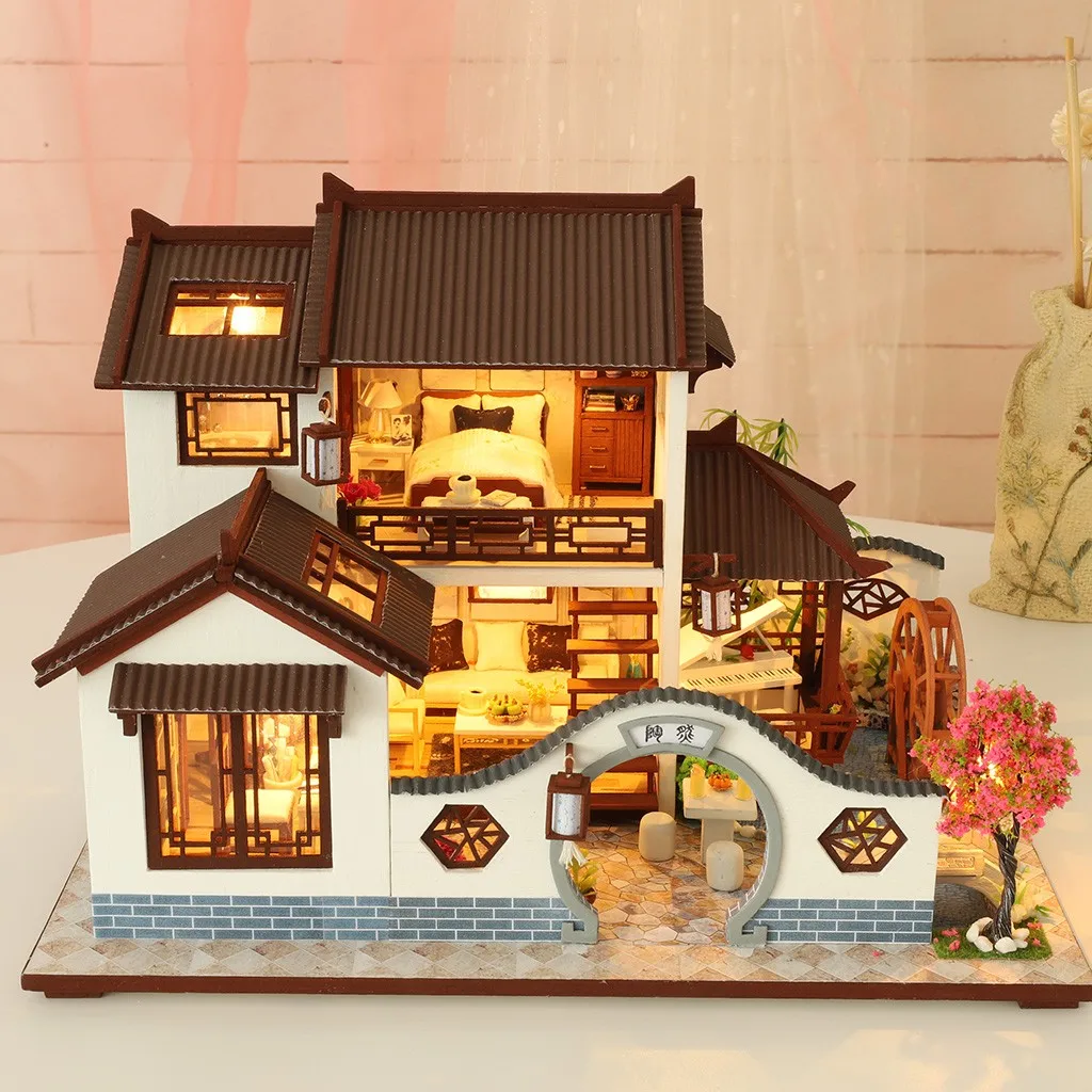 3D Деревянный кукольный домик древний город DIY Миниатюрная модель рождественские подарки игрушки
