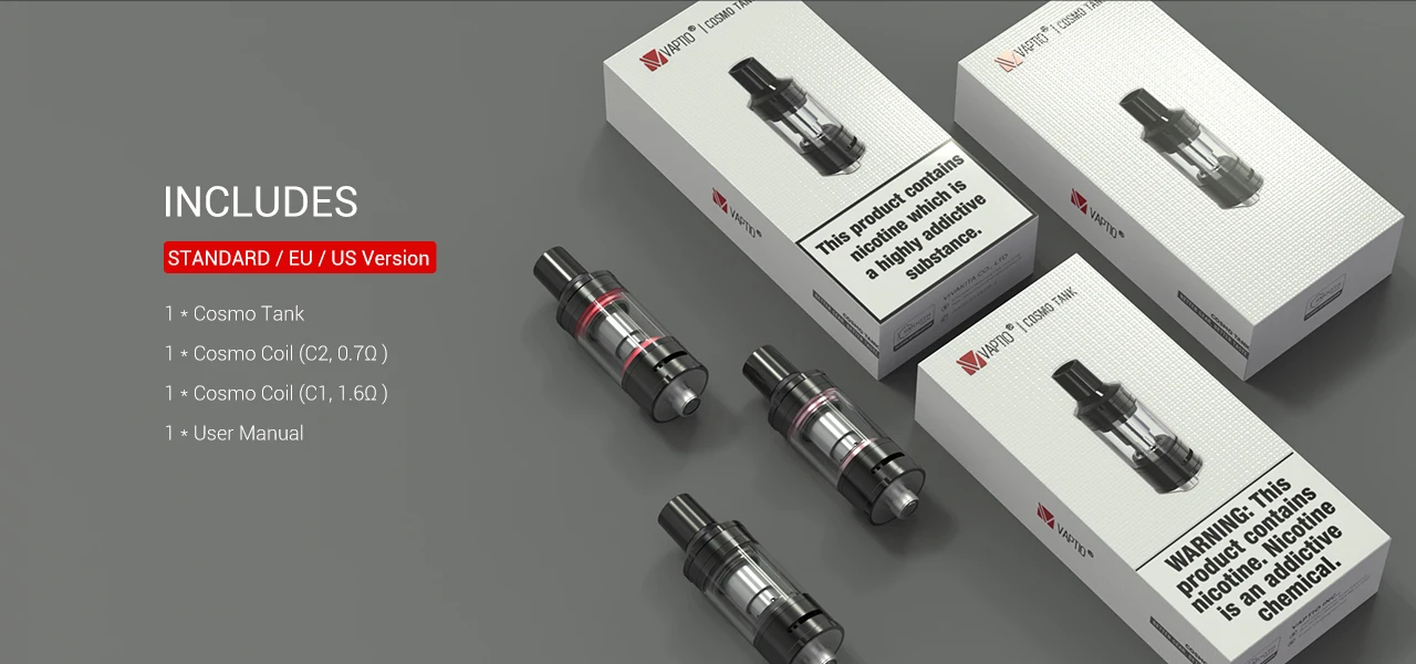 Vaptio COSMO Tank, самый чистый вкус производителя, предназначен для COSMO Kit. Он применяет запатентованную инновационную технологию регулировки воздушного потока Vaptio для управления потоком воздуха, просто завинчивая стеклянную трубку, более легкое переключение между DL и MTL. Катушка бака разработана так же сильно взаимозаменяемы с другими распространенными катушками различных брендов. Особенности Инновационная Регулировка воздушного потока Для DL и MTL Чистый вкус Совместим с большинством других катушек Упаковочный лист 1 * резервуар COSMO 1 * COSMO катушка (C1, 1.6Ω, предварительно установлен) 1 * COSMO катушка (C2, 0.7Ω) 1 * Руководство пользователя