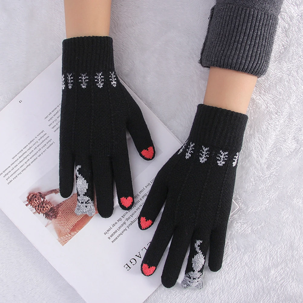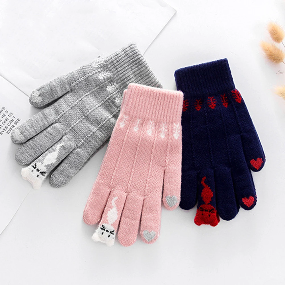 Женские перчатки SANWOOD, зимние теплые перчатки с милыми мультяшными кошками, перчатки для сенсорного экрана, вязаные теплые варежки, зима 2019