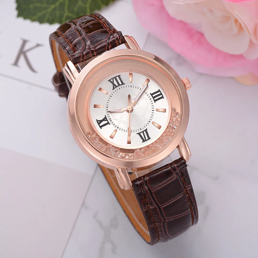 Women Watch PU Leather Strap Crystal Rhinestone Bracelet Quartz Ladies Watch Stainless Steel Wrist Watches zegarek damski 2019