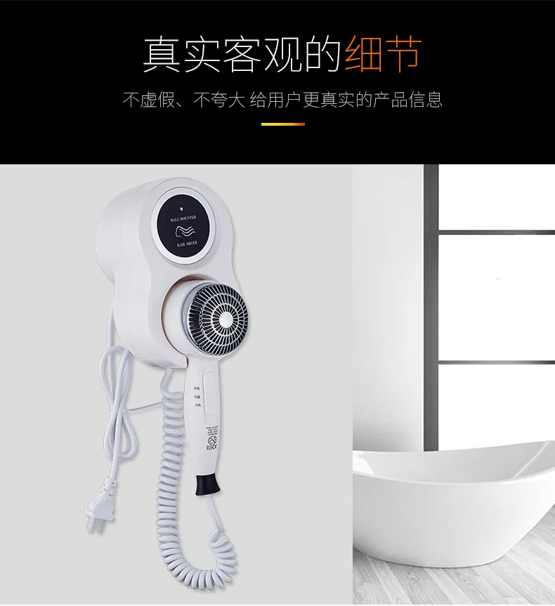 Описание продукта: ● Размер: 17*22*12 см ● Вес: 1 кг ● Цвет: белый, золотой ● Тип: с гнездом, без гнезда ● Материал: АБС + нержавеющая сталь ●Voltage:220V ●: 1600W ● Особенности: настенный ● Функция: холодный и горячий воздух, постоянная температура
