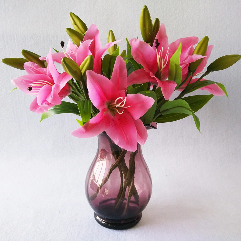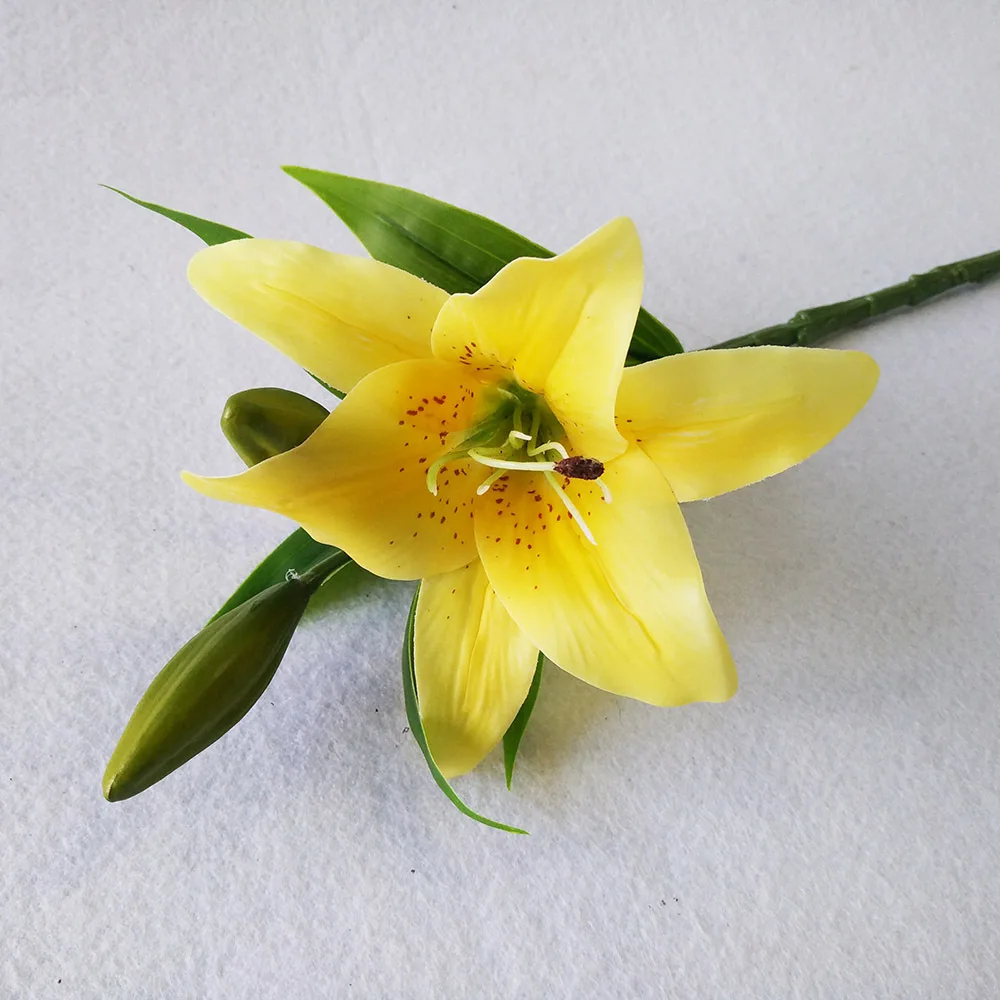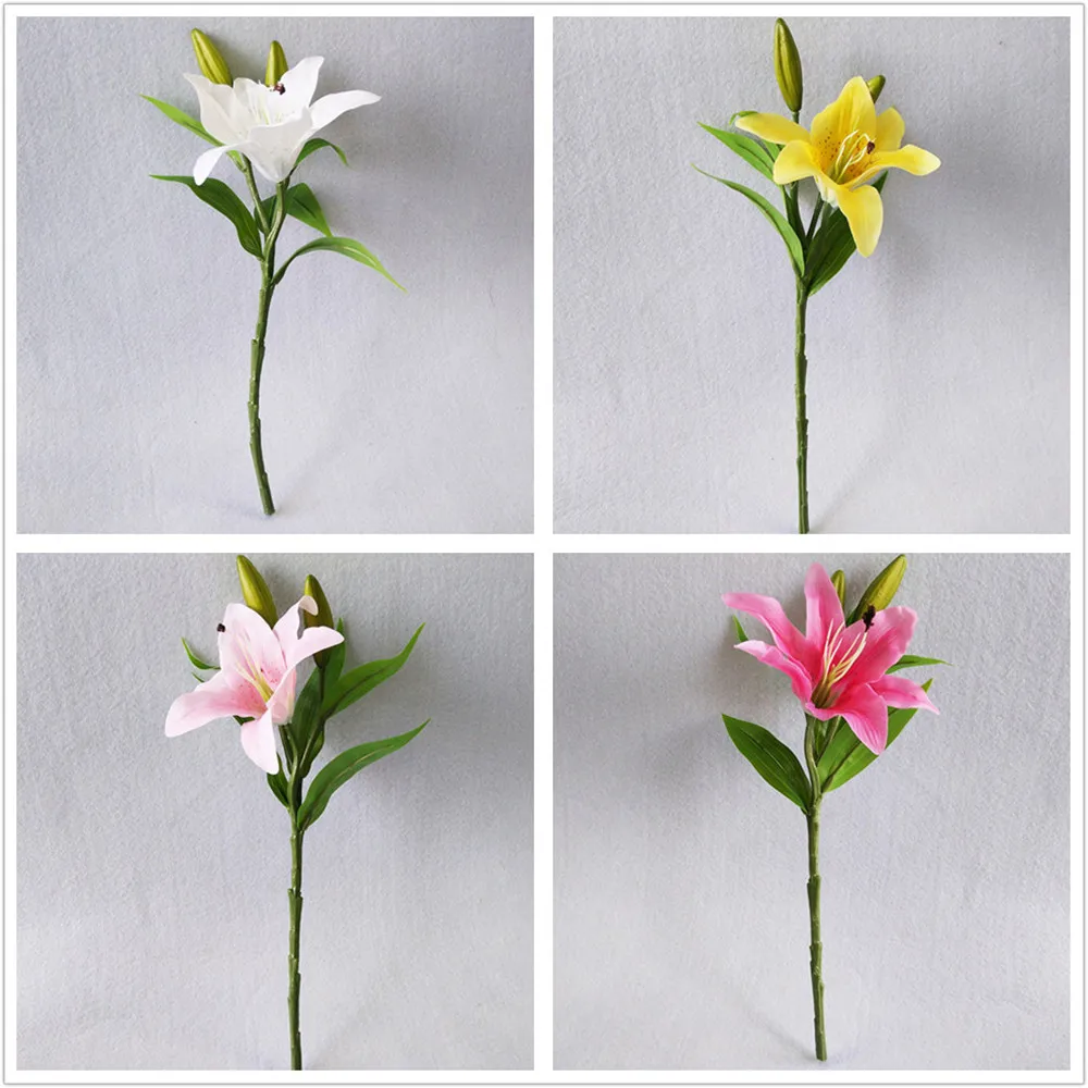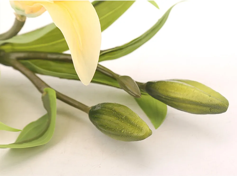 DIY 3 бутоны, реалистичные искусственная лилия Флорес Свадебный букет из искусственных цветов Растения Белая лилия украшения для домашнего праздника для дисплея