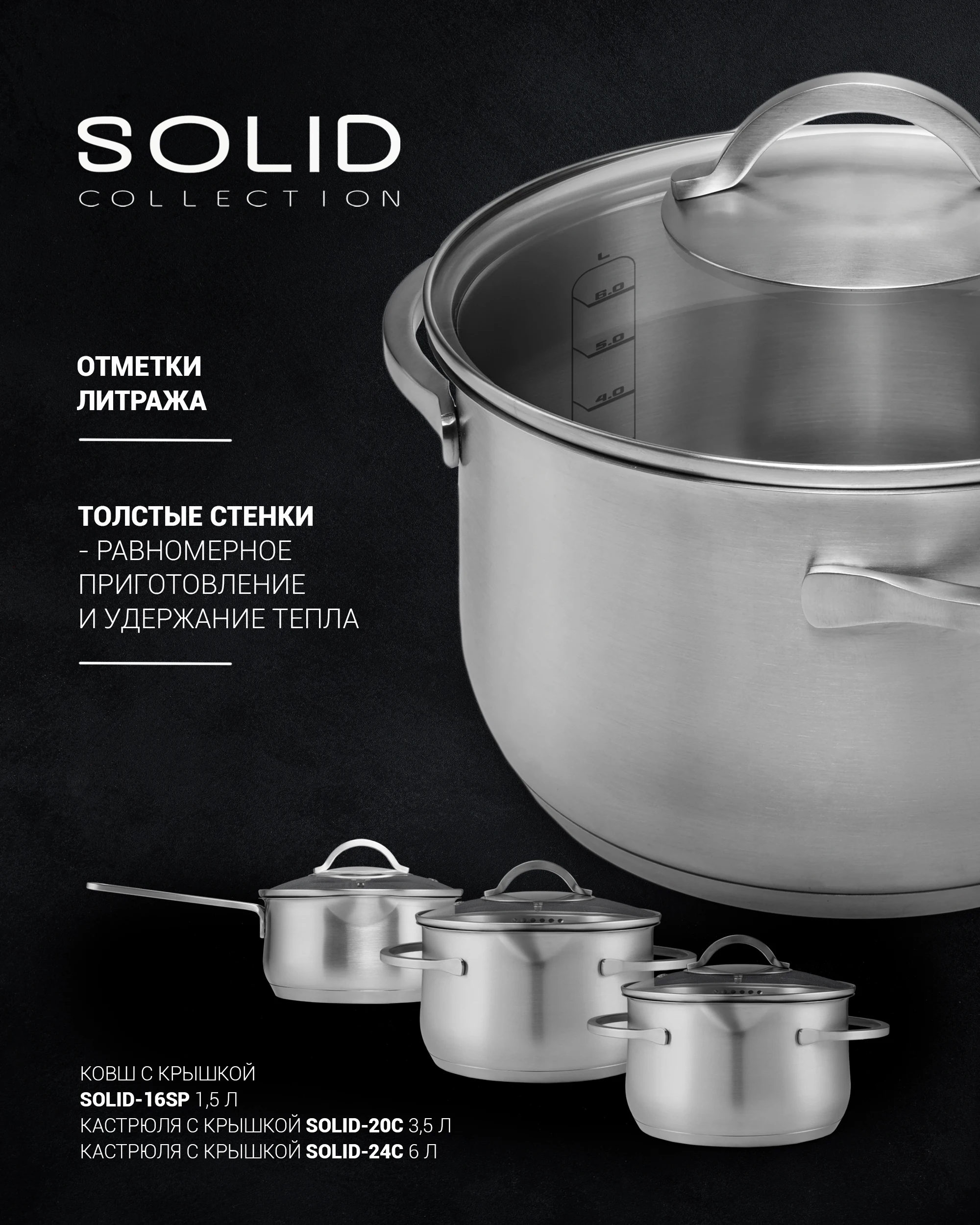 Кастрюля с крышкой Polaris Solid-24C