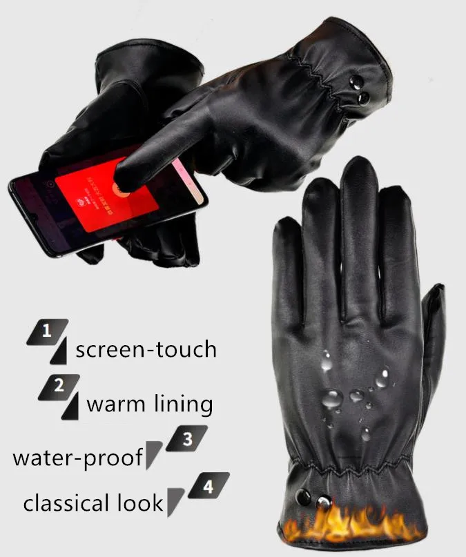 Кожаные перчатки для мужчин и женщин с сенсорным экраном на всю руку, черные перчатки для холодной погоды, на застежке, для езды на велосипеде, на открытом воздухе, теплые, водонепроницаемые