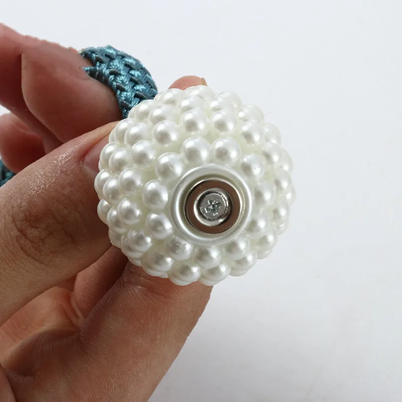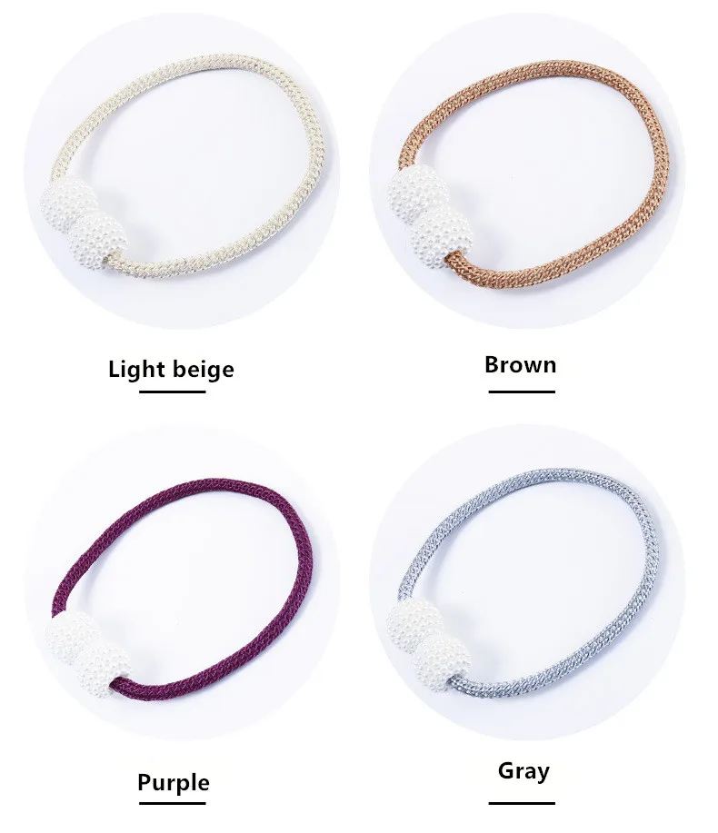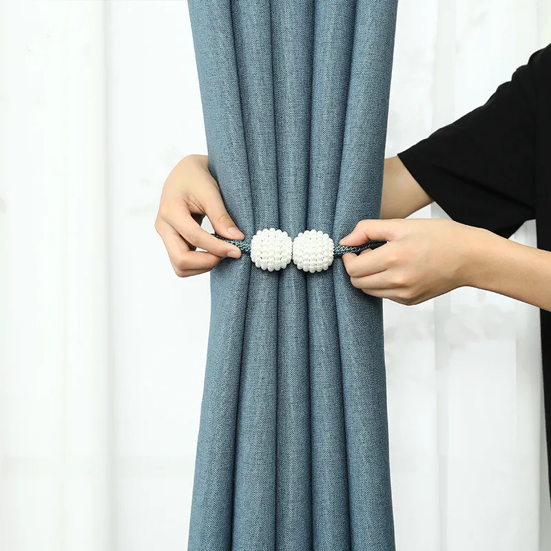 = Введение продукта = 2 шт., жемчужный шар, Магнитный занавес, завязывающийся на заднюю панель, держатель с пряжкой, пряжка, зажимы, Аксессуары для штор, домашний декор Размер: Общая длина: 50,5 см Диаметр шара: 3,5 см Материал: полиэфирная пряжа + магнит Посылка: MOQ = 2 шт. = Описание продукта =