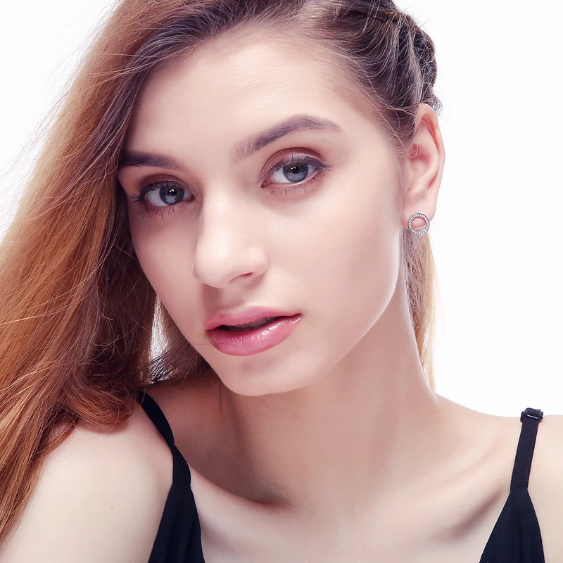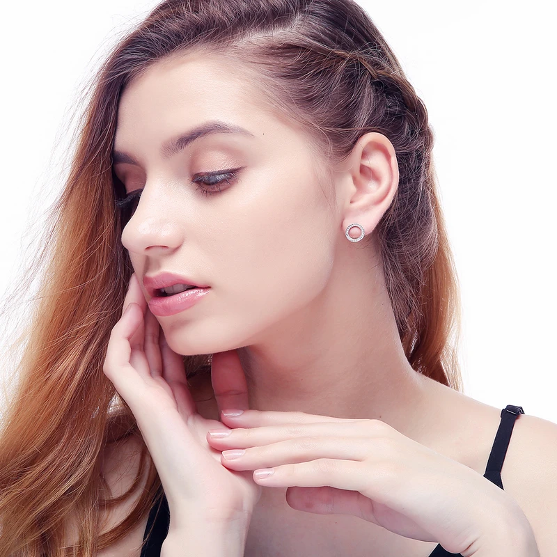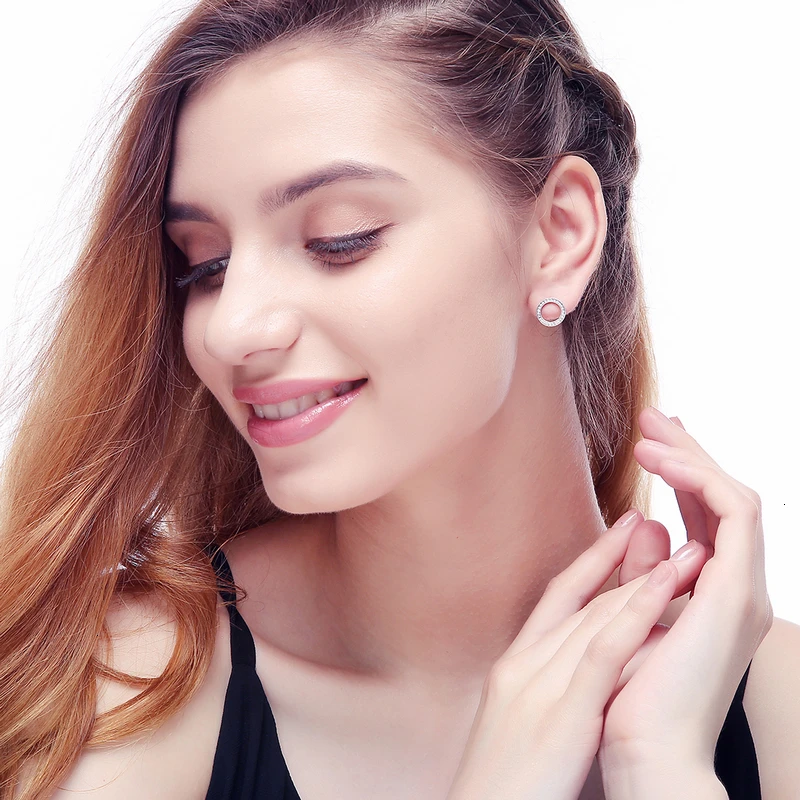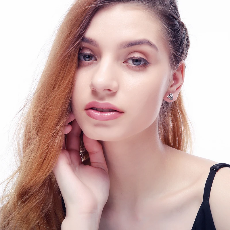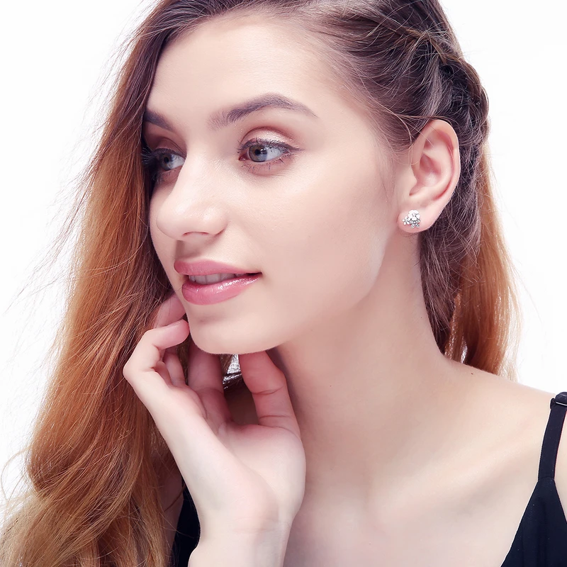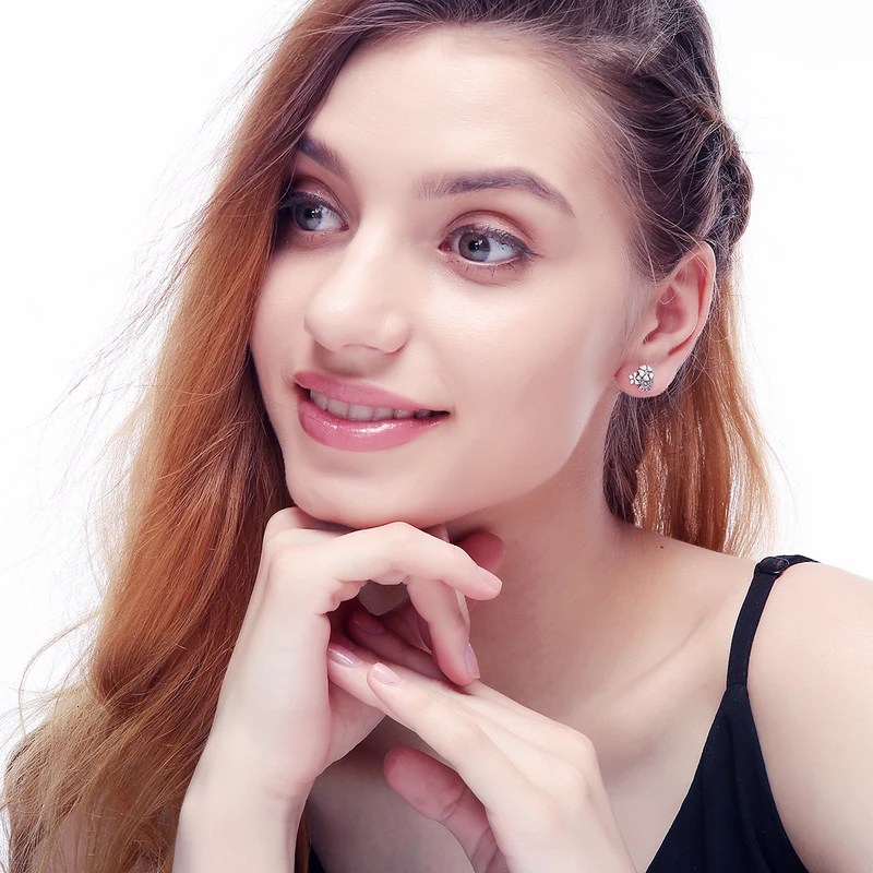 Пластины:Подлинное 925 пробы серебро,100% Серебро 925 пробы Серьги-гвоздикиСерьги,Женские серьги-гвоздики с кубическим цирконием