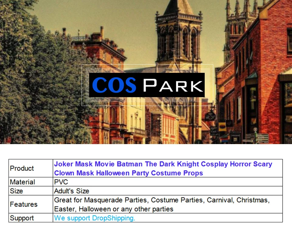 Материал: ПВХ Размер: взрослый размер Особенности: отлично подходит для маскарадных вечеринок, костюмированных вечеринок, карнавала, Рождества, Пасхи, Хэллоуина или любых других вечеринок Поддержка: мы поддерживаем дропшиппинг.