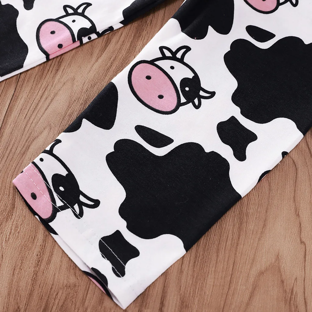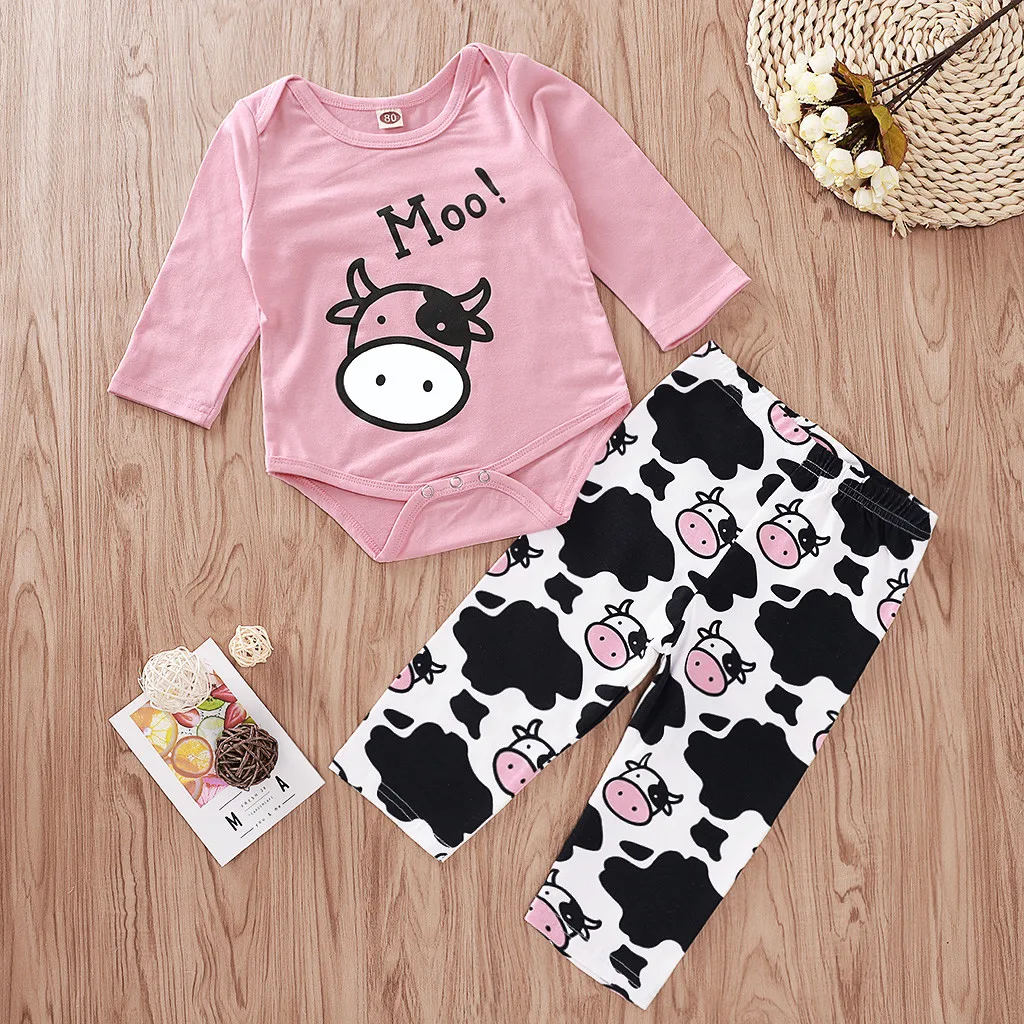 Милый комбинезон с рисунком коровы для новорожденных девочек + штаны