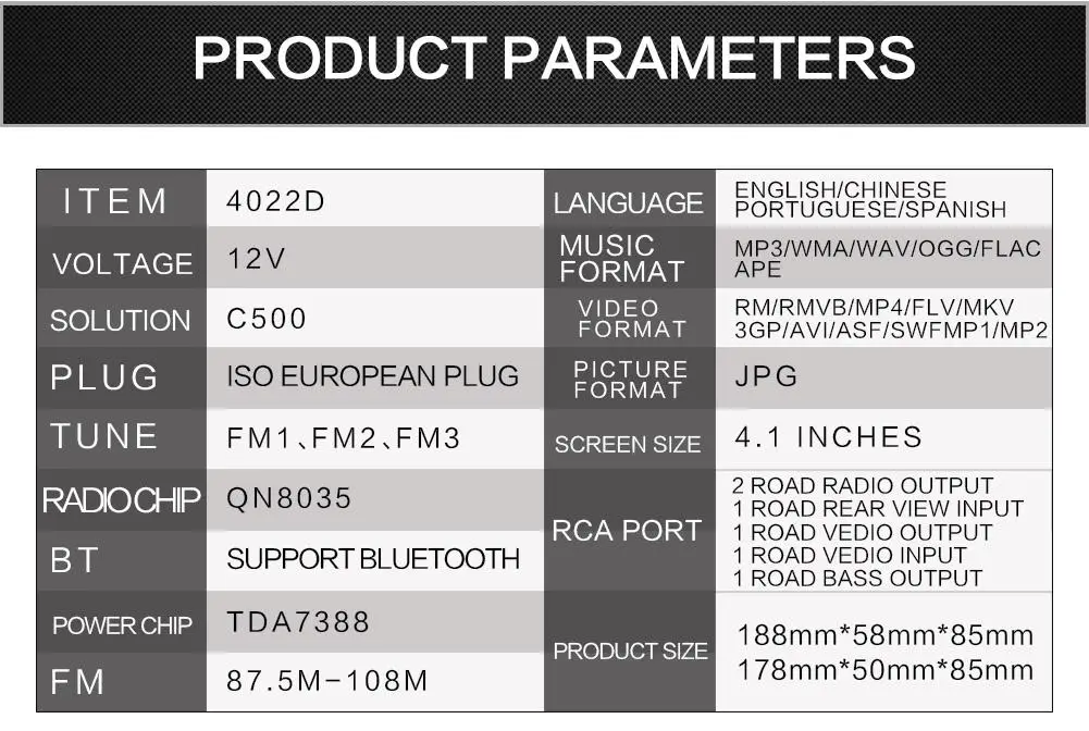 Поддержка аудиоформата: MP3 / WMA / WMV / OGG / APE / ACC / FLAC / audio