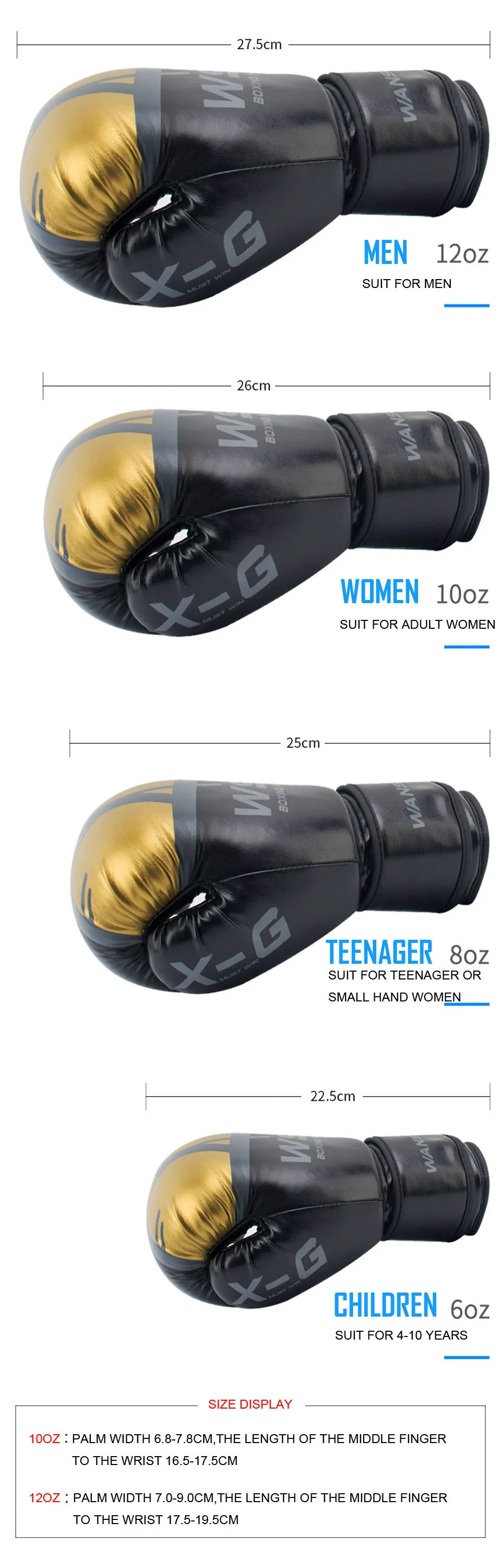 ТЕХНИЧЕСКИЕ ХАРАКТЕРИСТИКИ Вес: 500 г за пару материал: полиуретан Размер: 6 унций, 8 унций, 10 унций, 12 унций Костюм для: взрослых, мужчин, женщин Применимая сцена: карате/Муай/Тай/свободный бой/ММА/Санда/обучение, пожалуйста, допускайте отклонение в 1-2 см из-за ручного измерения мужской t из-за различных мониторов и условий освещения, цвета могут немного отличаться от приведенных фотографий, как выбрать размер: 6 унций: 3-11 лет дети (ширина ладони <6,5 см и длина ладони между: 12-16 см) 8 унций: 12-15 лет (ширина ладони: 6,5-7,5 см и длина ладони: 15-18 см) 10 унций: Взрослый мужской или женский (ширина ладони: 7,5-8,5 см и длина ладони: 16-20 см) 12 унций: Взрослый мужской (ширина ладони> 8,5 см и длина ладони: 19-22 см) упаковочный лист 1 пара боксерских перчаток для взрослых