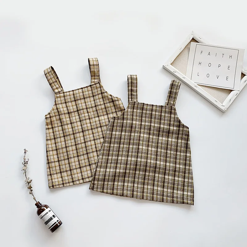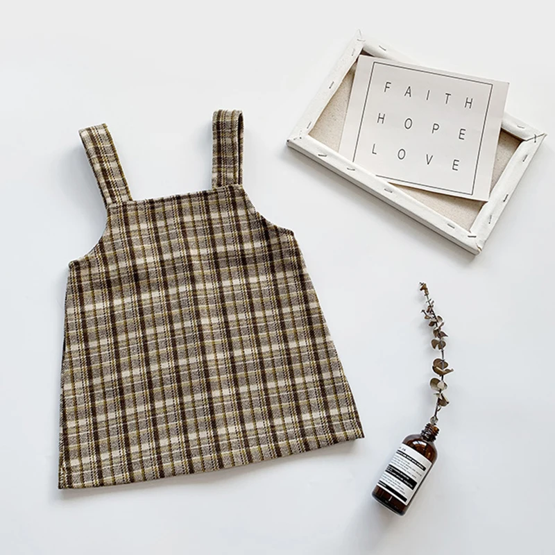 Клетчатое платье на бретелях; платья для маленьких девочек с карманами и пуговицами; детское платье; зимнее платье для девочек; Детские платья для девочек
