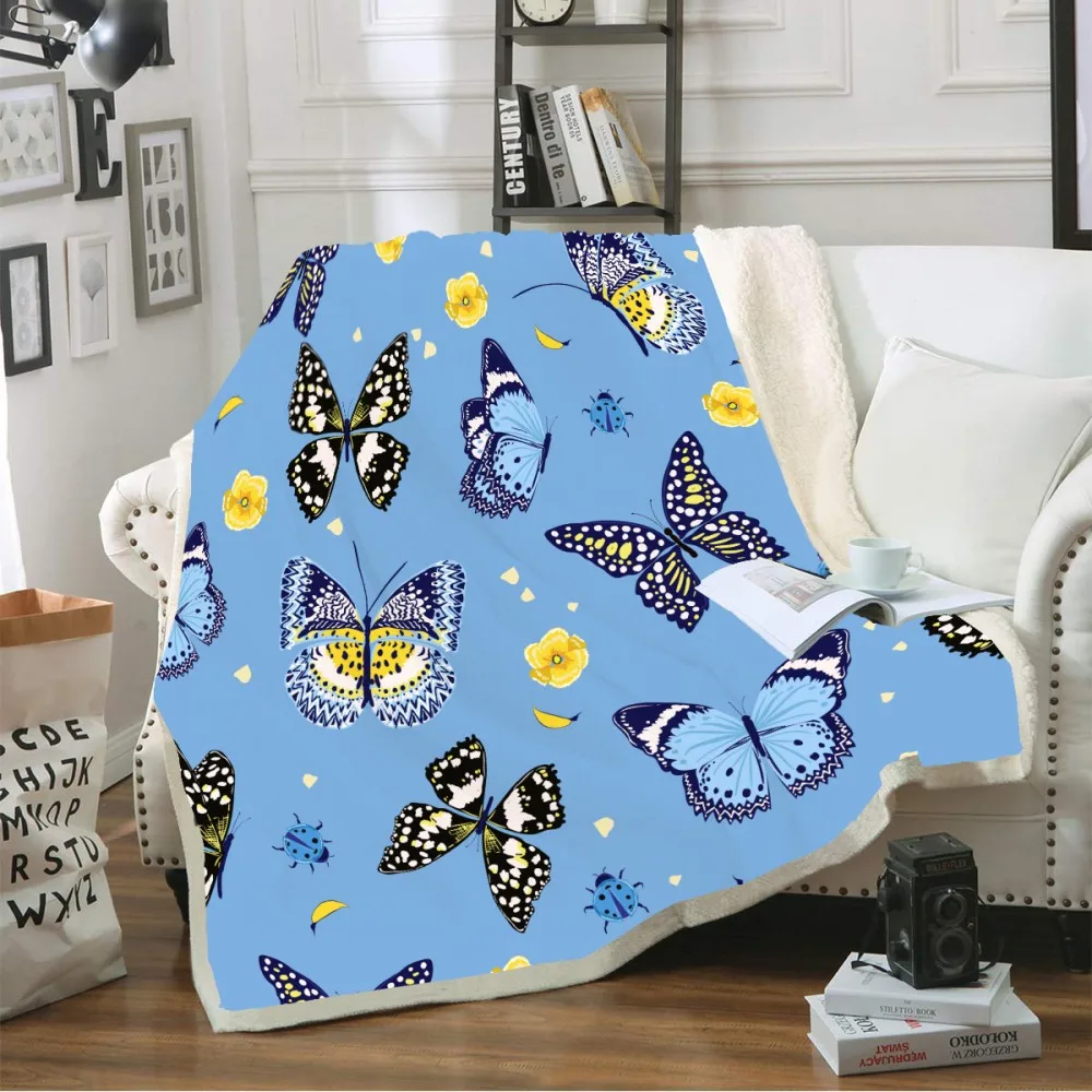Одеяло из шерпы, Флисовое одеяло с 3D принтом бабочки, уютное одеяло для комнаты, красочное покрывало для дивана с крыльями, одеяло для путешествий, пикника, сна