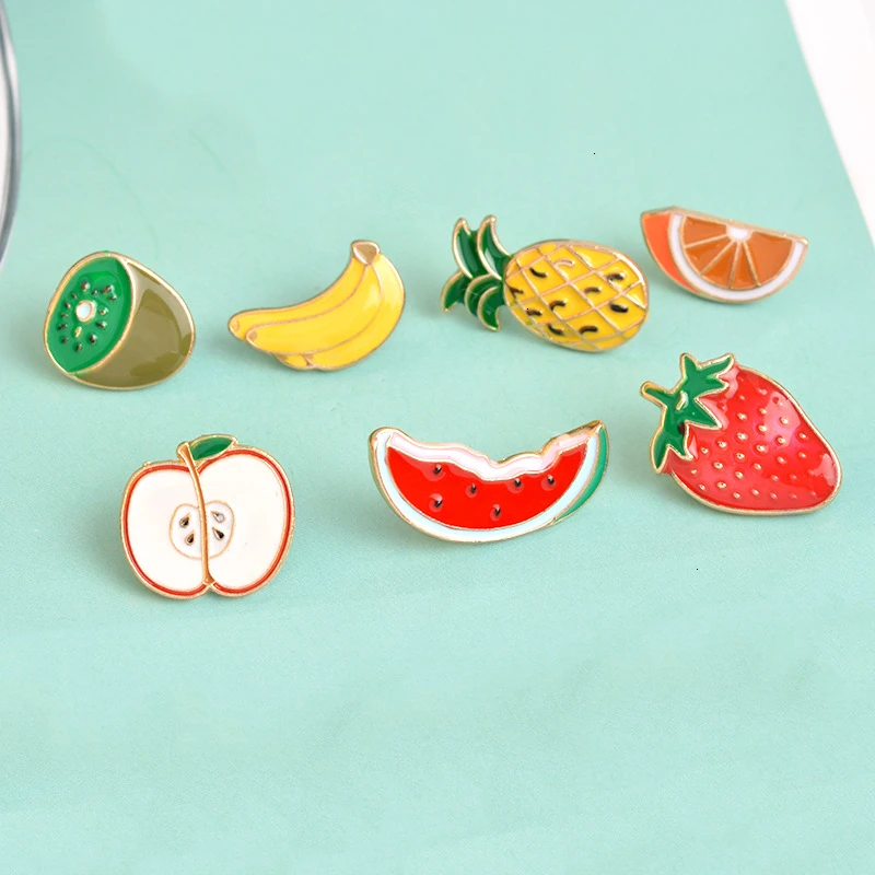 Мультфильм фрукты прекрасный банан клубника арбуз киви фрукты яблоко мандарин оранжевый брошь с ананасом оптовая продажа