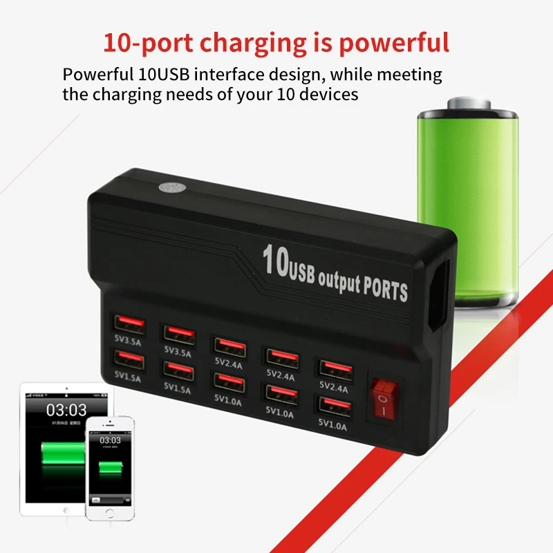 Разъем зарядного устройства имеет мощный интерфейс USB 10, чтобы удовлетворить потребность зарядки ваших десяти устройств синхронно. В зарядное устройство для трансмиссии работает стабильно и скорость передачи данных быстрая.