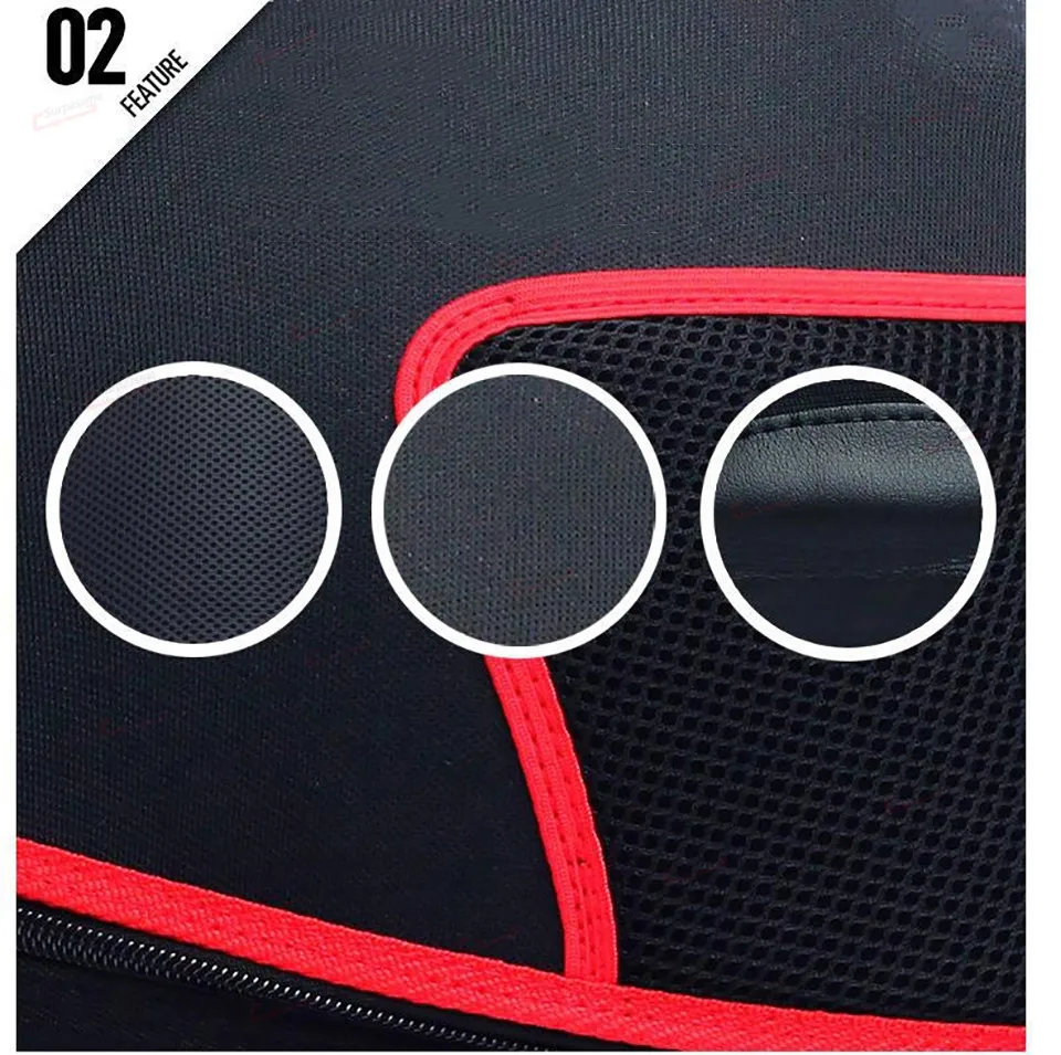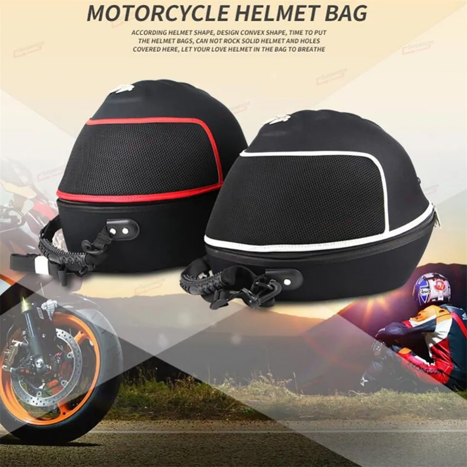 【Product name】Motorcycle helmet bag 【Condition】: 100% brand new 【Color】: Red edge/Grey edge 【Large size helmet bag】: length 35cm* height 30cm* base depth 14cm, suit for full face helmet 【Small size helmet bag】: length 35cm* height 27cm* base depth 9cm, suit for half helmet or summer helmet 【Material】: sandwich net cloth +Zhu Dibu 1 ) sandwich net cloth : delicate, soft, with the moisture wicking performance of the mailbox,breathable mesh cloth splicing, making the bag look more beautiful 2 ) Zhu Dibu through EVA The voltage pressing process, fixed shape, not only gives a solid and refined feeling in appearance, but also has a firm material and will not be easily deformed for long-term use. 3 ) wear-resistant microfiber leather at the bottom, good toughness and firmness, Texture, good wear resistance, mildew resistance.