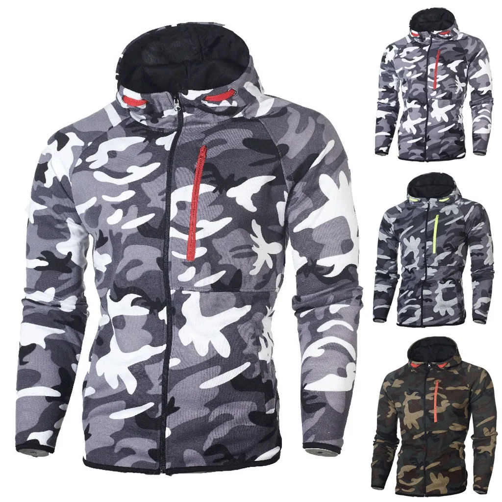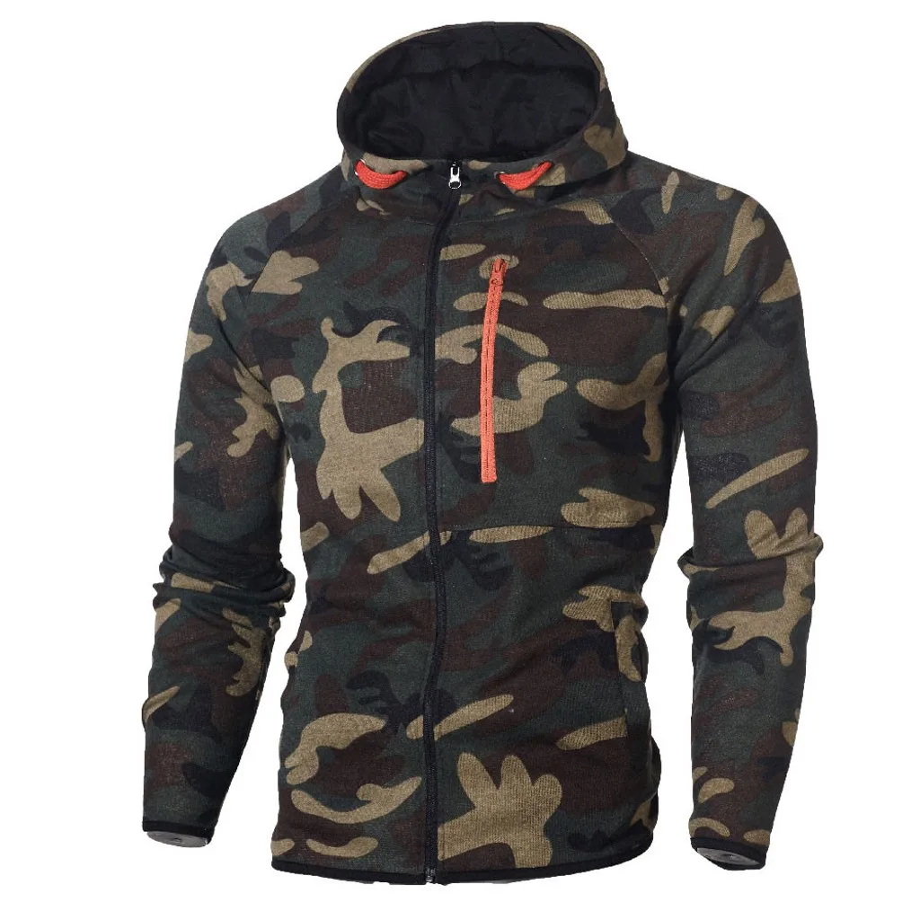 Модная мужская теплая зимняя камуфляжная толстовка на молнии