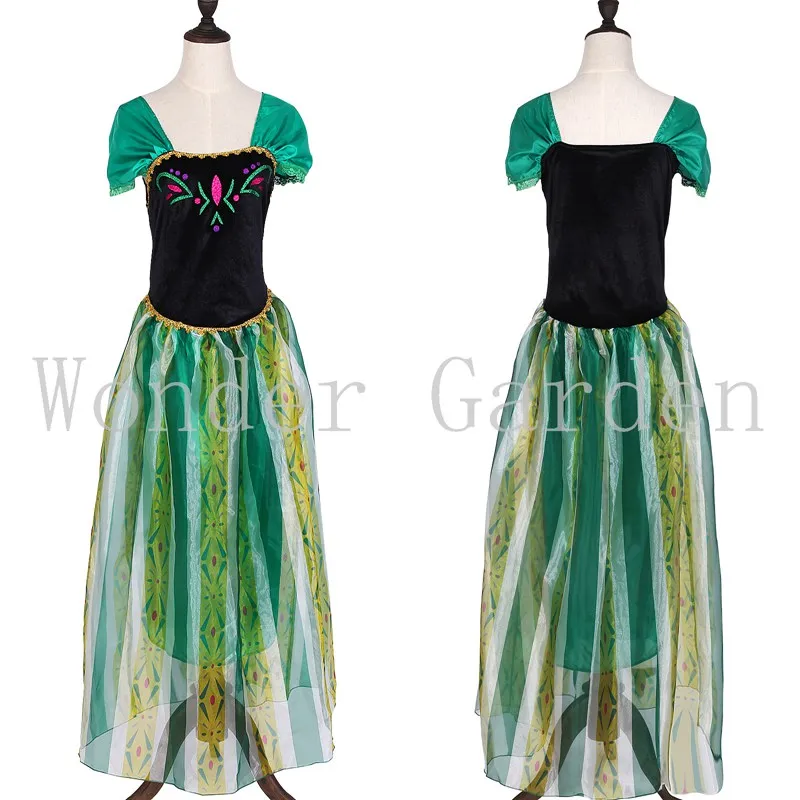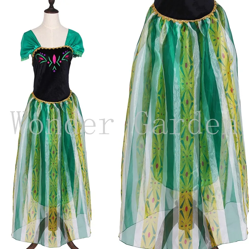 Новое летнее зеленое платье принцессы Анны для женщин и взрослых, костюм на Хэллоуин