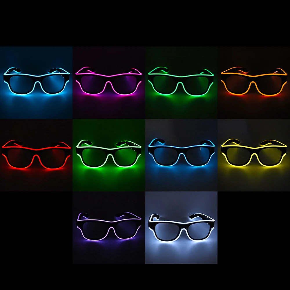Светодиодные очки, 10 видов цветов, дополнительно, светящиеся, EL Wire, очки, USB зарядка, мерцающие, светящиеся, для вечеринки, клуба, праздника, бара, декоративные очки