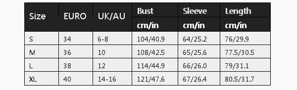 Размер евро Размер Великобритания/Австралия Размер Бюст Длина рукава