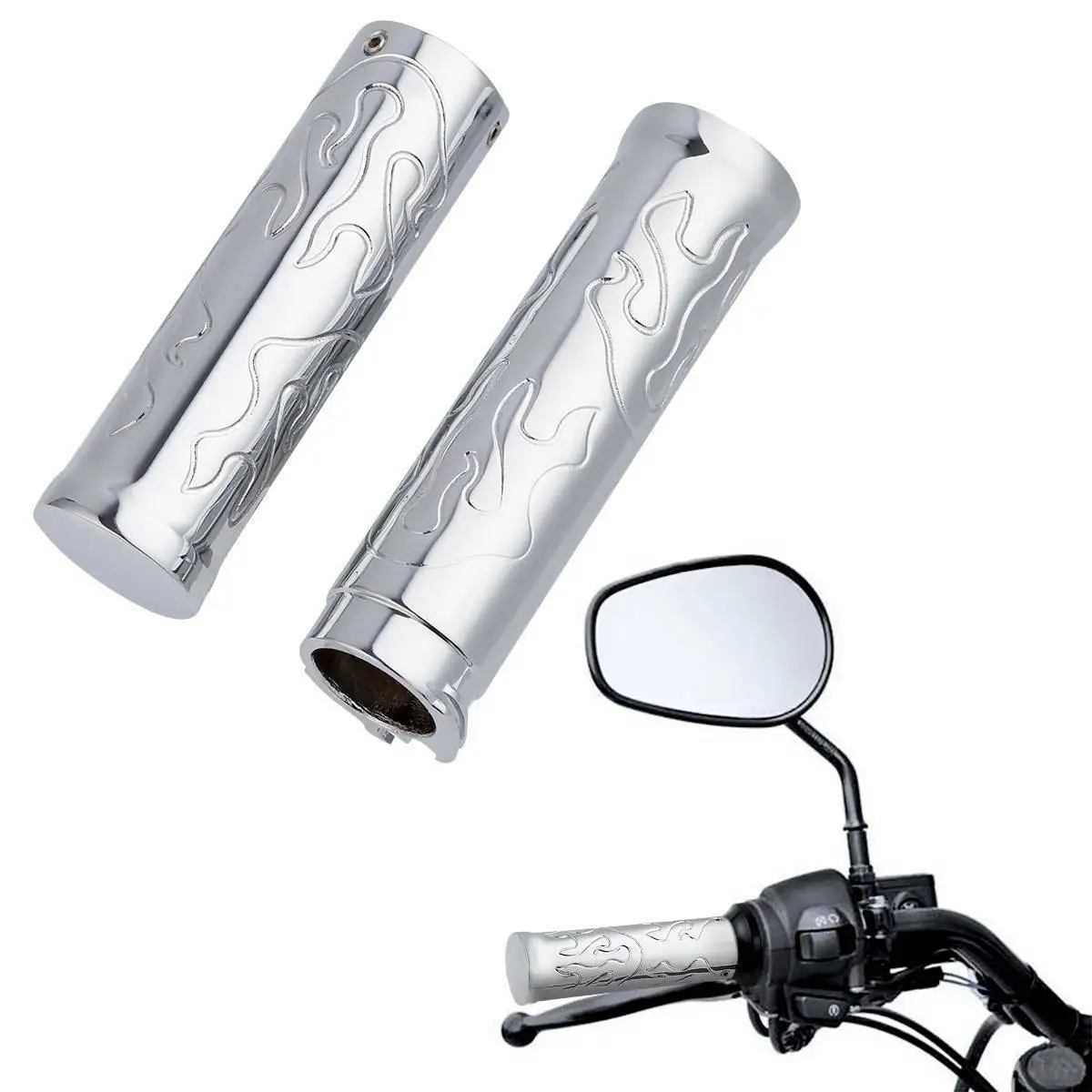 Aftermarket 100% New Easy to install Color:Chrome Material:Aluminum Inner Hole Diameter:1'' (as shows in the picture) Note:Please allow the deviation dimensions as we measured manually No install instructions and No Modification Needed