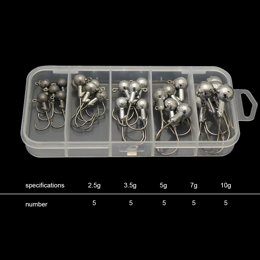 Набор рыболовных крючков 25 шт. джиг голова свинца Jighead рыболовные крючки Вибрационный крючок Неокрашенный червь круговой крюк для ловли карпа 35