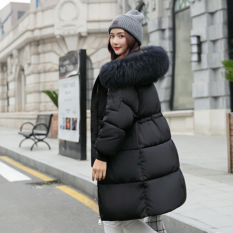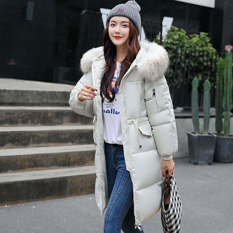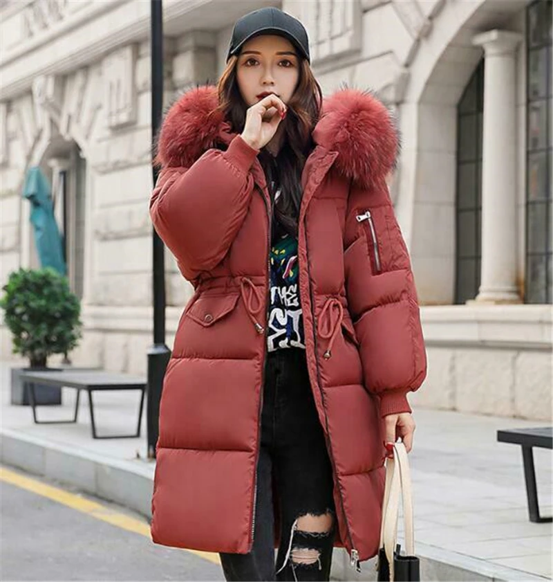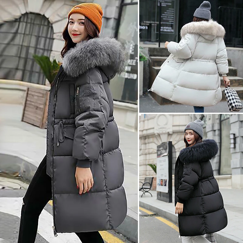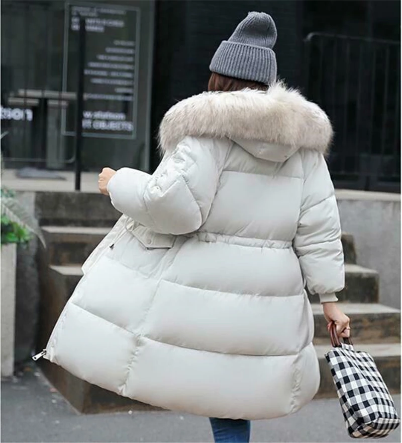 2020 женская зимняя куртка с меховым капюшоном, длинная пуховая теплая парка, стеганое пуховое пальто, Повседневная теплая верхняя одежда, топы