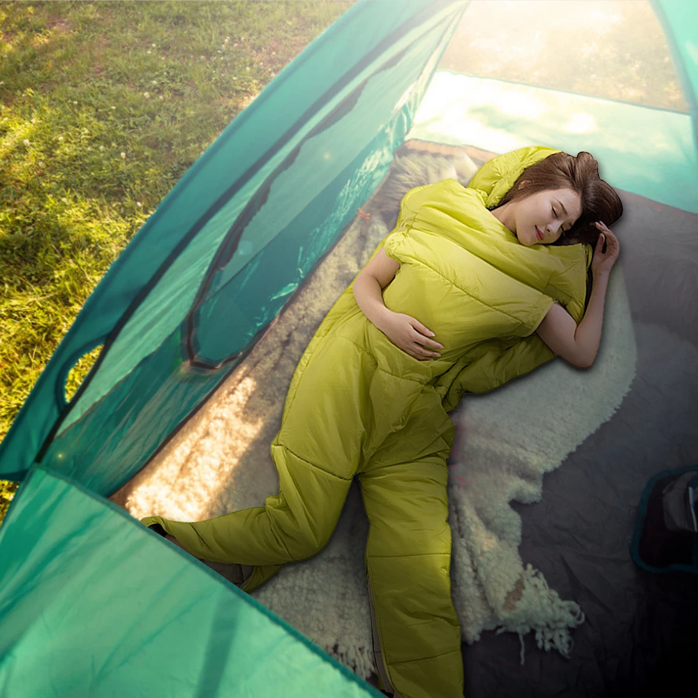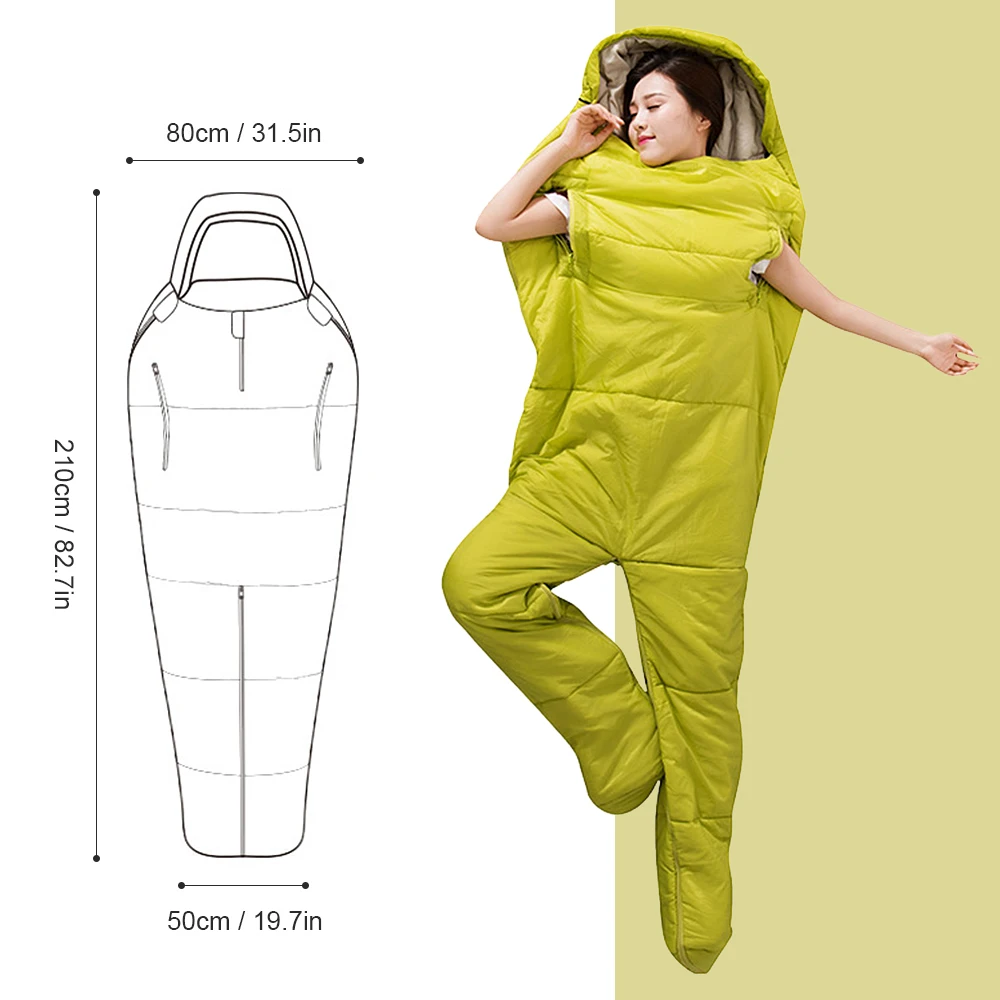 Этот спальный мешок разработан в гуманоидном стиле, который имеет отверстия на молнии и ноги, чтобы вы могли свободно двигаться. Это тепло и удобно, чтобы вы наслаждались уютным сном, идеально подходит как для внутреннего, так и для наружного использования.
