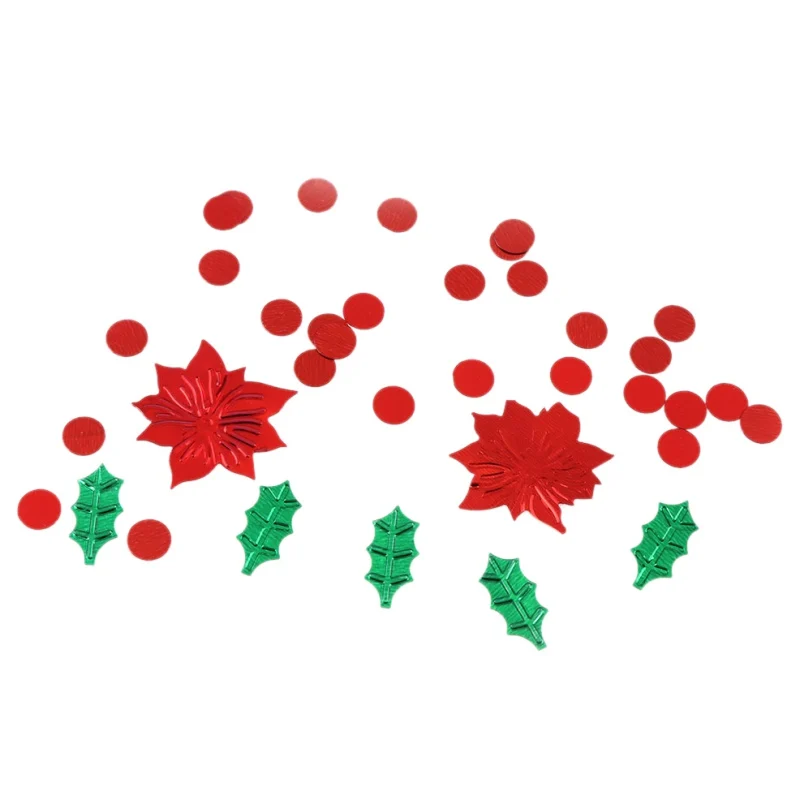 Описание изделия: Материал: ПВХ Размер: 18x18 мм/0,7in x 0,7in (Снежинка) 16x18 мм/0,63in x 0,7in (олень), 40x15 мм/1,57 дюйма x 0,59 дюйма (красное Рождество), 4 мм/0,15 дюйма (ягода) Количество: 1 комплект Вес (прибл.):15 г посылка включает в себя: 1 комплект рождественское конфетти (15 г)