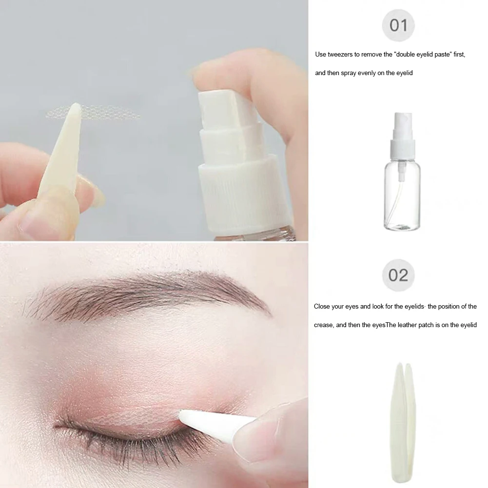 Сначала удалите пинцетом кусок пластыря для век, а затем распылите слой воды на пластырь для век двойного сложения и дайте воде заполнить каждое отверстие.