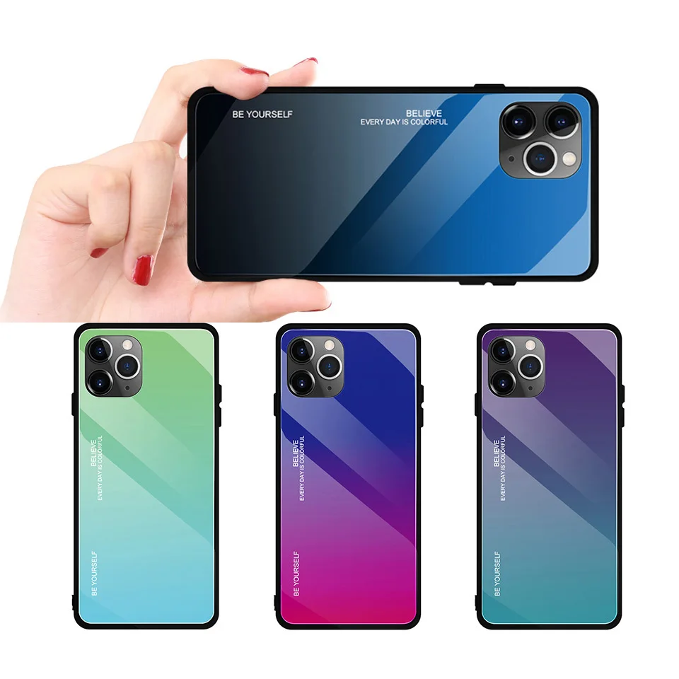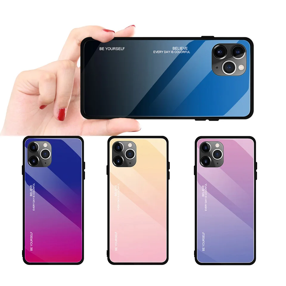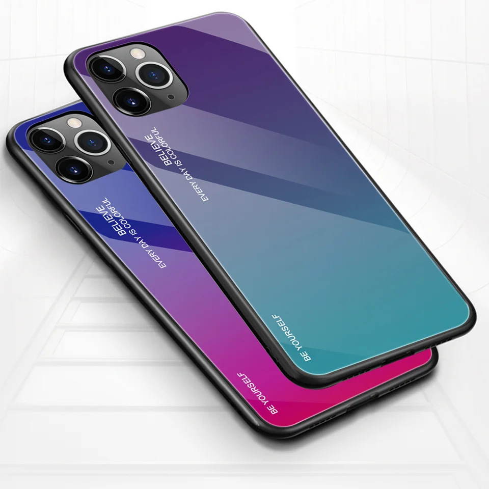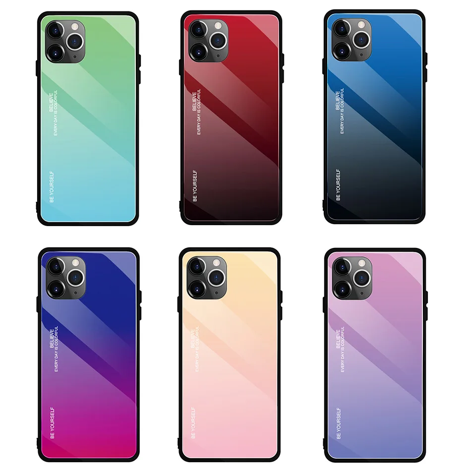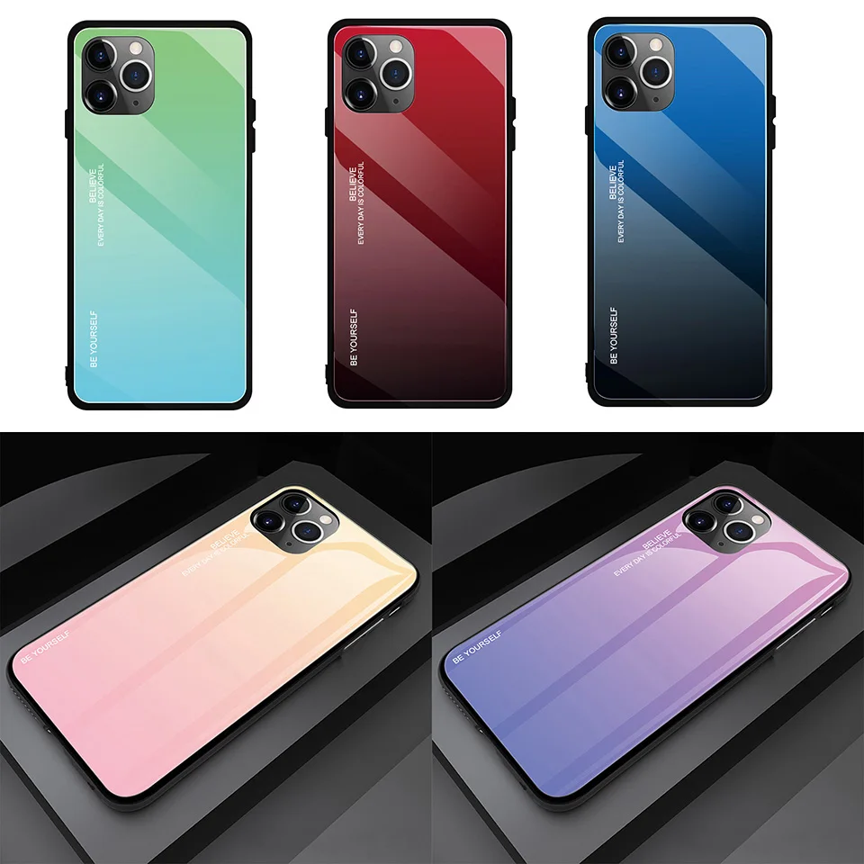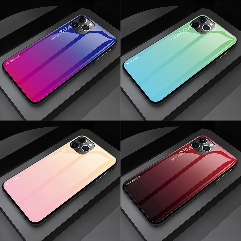 9H чехол из закаленного стекла для Apple iPhone11 iPhone 11 Pro Max ультра тонкий роскошный градиентный чехол для телефона с защитой от отпечатков пальцев