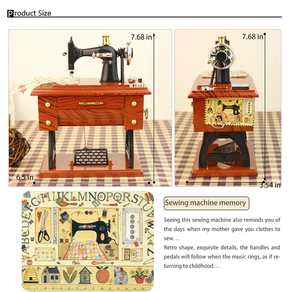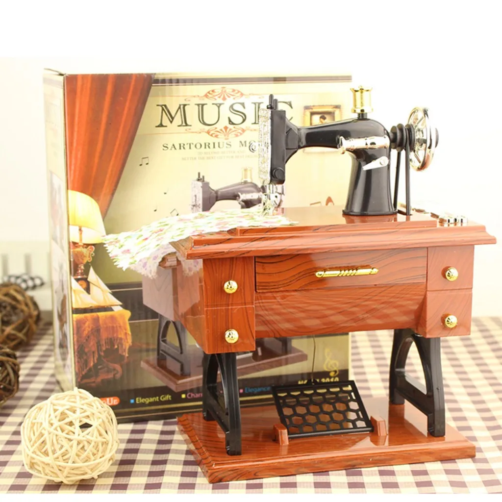 Винтаж музыкальная шкатулка мини Швейная машина стиль механический подарок на день рождения