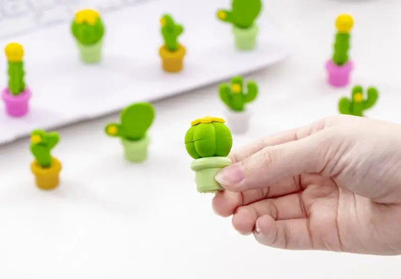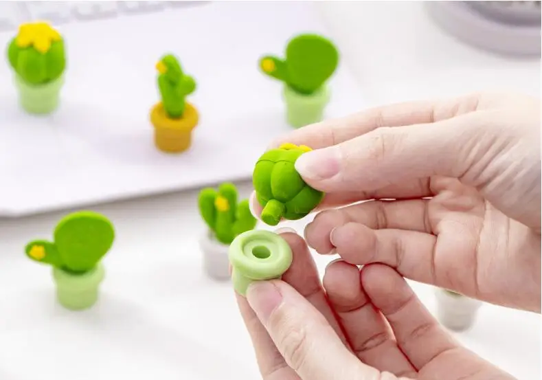 5 шт. Кактус-ластик Kawaii карандаш ластик мультфильм Кактус в горшке растение стиль дети смешные ластики корейский канцелярские принадлежности Школьные принадлежности