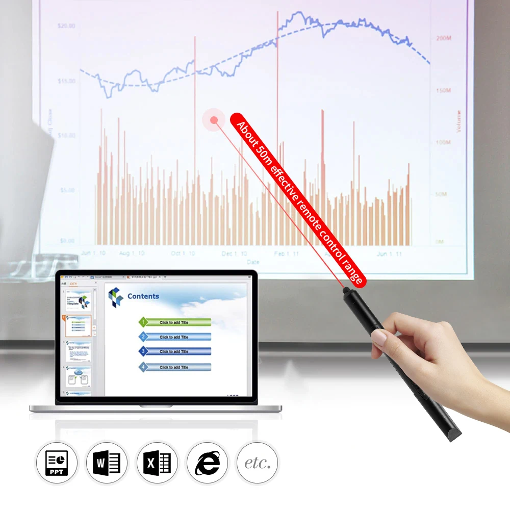 Особенности: Широкий спектр применений. Может быть широко применен в обучении, собрании, PPT презентации и т. Д. Для большего удобства. 2,4 ГГц частоты. 2,4 GHz wireless presenter ручка обеспечивает максимальный. Дистанция дистанционного управления 50 м, которая очень удобна в презентации PPT или других, не нужно беспокоиться о неэффективном управлении PPT, когда вы ходите по конференц-залу или классу. Функции кнопок. С кнопками для управления страницами вверх, вниз по страницам, полный экран (Длительное нажатие кнопки вверх для 1s), черный экран (длинное нажатие кнопки вниз для 1s), удобный в использовании. И, нажав на лазерную кнопку, красный лазер включен, чтобы легко указать основной фокус для слушателей, и пусть они следуют вашим инструкциям, просто нажав кнопку. Маленький размер для портативности. Небольшой размер и тонкий дизайн делают его похожим на ручку и поставляется с портативной сумкой для удобной переноски, предлагая больше удобства для обучения или встречи. Функция почерка. Поставляется с сенсорной крышкой ручки, которая оснащает ее функцией почерка. Подключи и работай. Поставляется с usb-приемником, который позволяет подключать и играть, не требуется драйвер. Спецификация: Товар: беспроводной ведущий Частота: 2,4 ГГц Расстояние дистанционного управления: 50 м/164.0ft (макс.) Длина волны: 650 нм Лазер: <1 мВт- < 5 мВт (максимальная выходная мощность) Поддержка системы: для Microsoft, Windows 8/7/Vista/XP/2000, Mac OS Android Цвет: черный Батарея: 1 * AAAA (не входит в комплект) Материал: АБС-пластик Товар Длина: 14,3 см/5,6 дюйм (ов) Товар Вес: 22 г/0,8 унции Посылка Размеры: 17,3*5,5*3 см/6,8*2,2*1,2 дюйм (ов) Посылка Вес: 84 г/3,0 oz Посылка включает: 1 * Ведущий 1 * usb-приемник 1 * крышка 1 * сумка 1 * Руководство пользователя