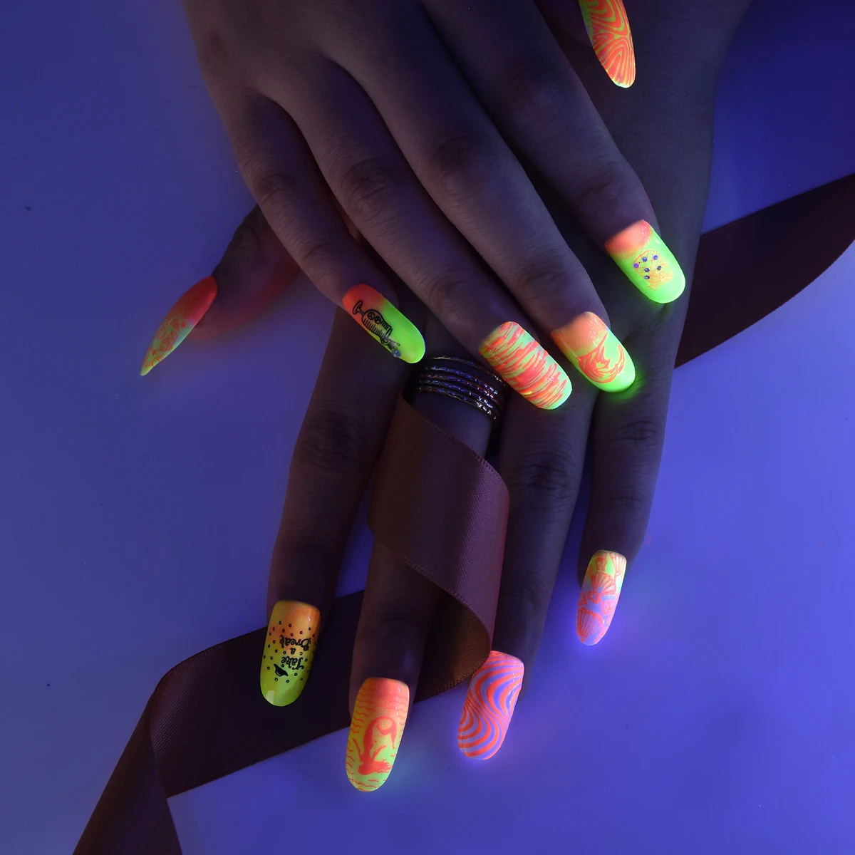 Флуоресцентный штемпелюющий гель не может излучать ночью. Он должен быть освещен УФ-светильник, или он может издавать светильник ненадолго после поглощения УФ-светильник.
