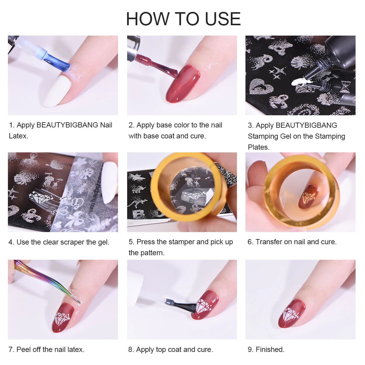 -3. Нанесите гель для штамповки BEAUTYBIGBANG на штамповочные пластины.