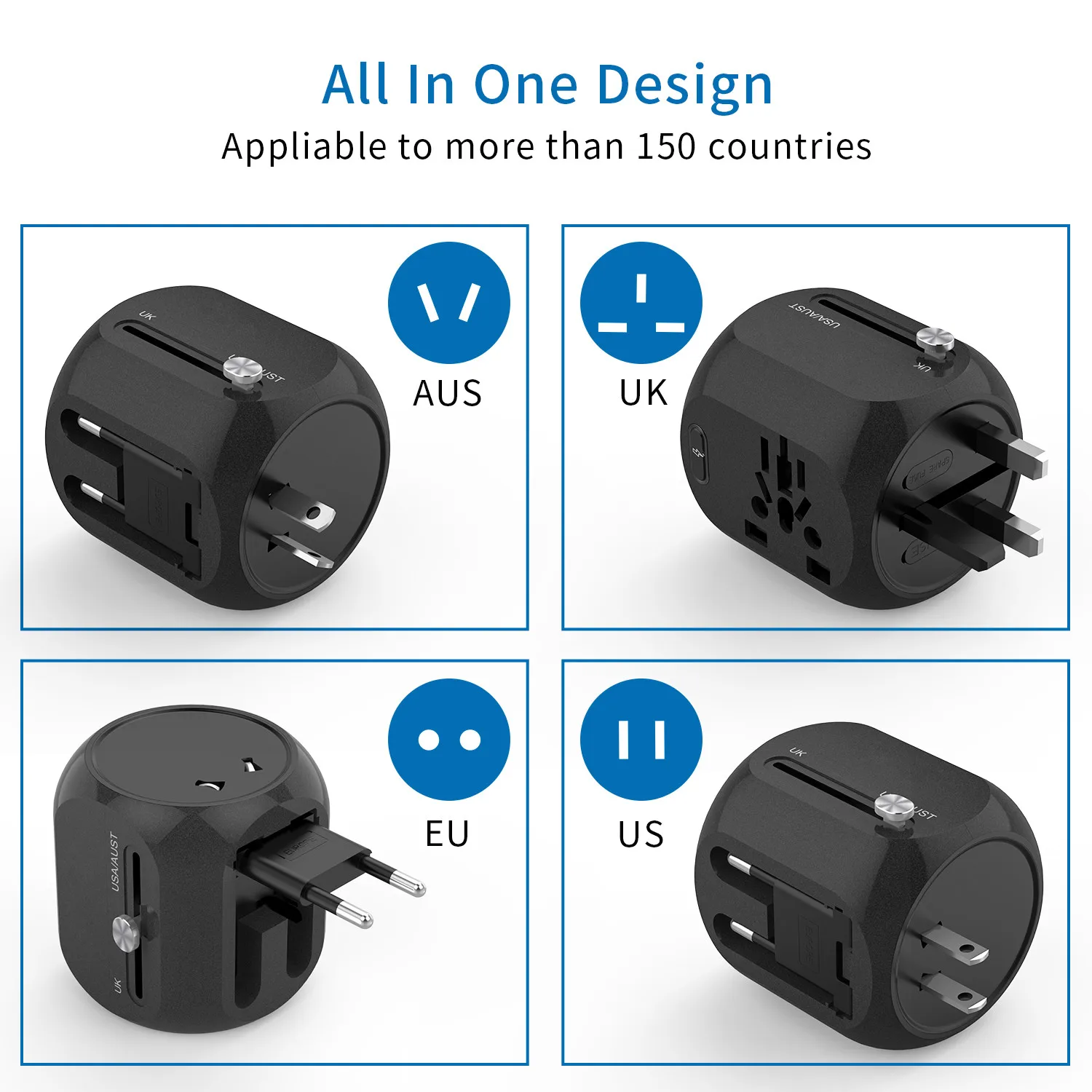 1. Подходит для устройств с обнаружены вилки (2 полюса) 2. 1 зарядный порт QC3.0, 1 порт Type-C, 1 порт USB для зарядки 3. Совместимость: 150 + стран (Швейцария/Италия/Бразилия, США, Великобритания, Австралия/Китай, Европа) 4. Сменный предохранитель: T8A (запасной предохранитель в комплекте) 5. Примечание: Этот адаптер не преобразует напряжение.