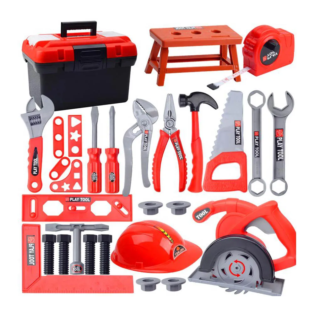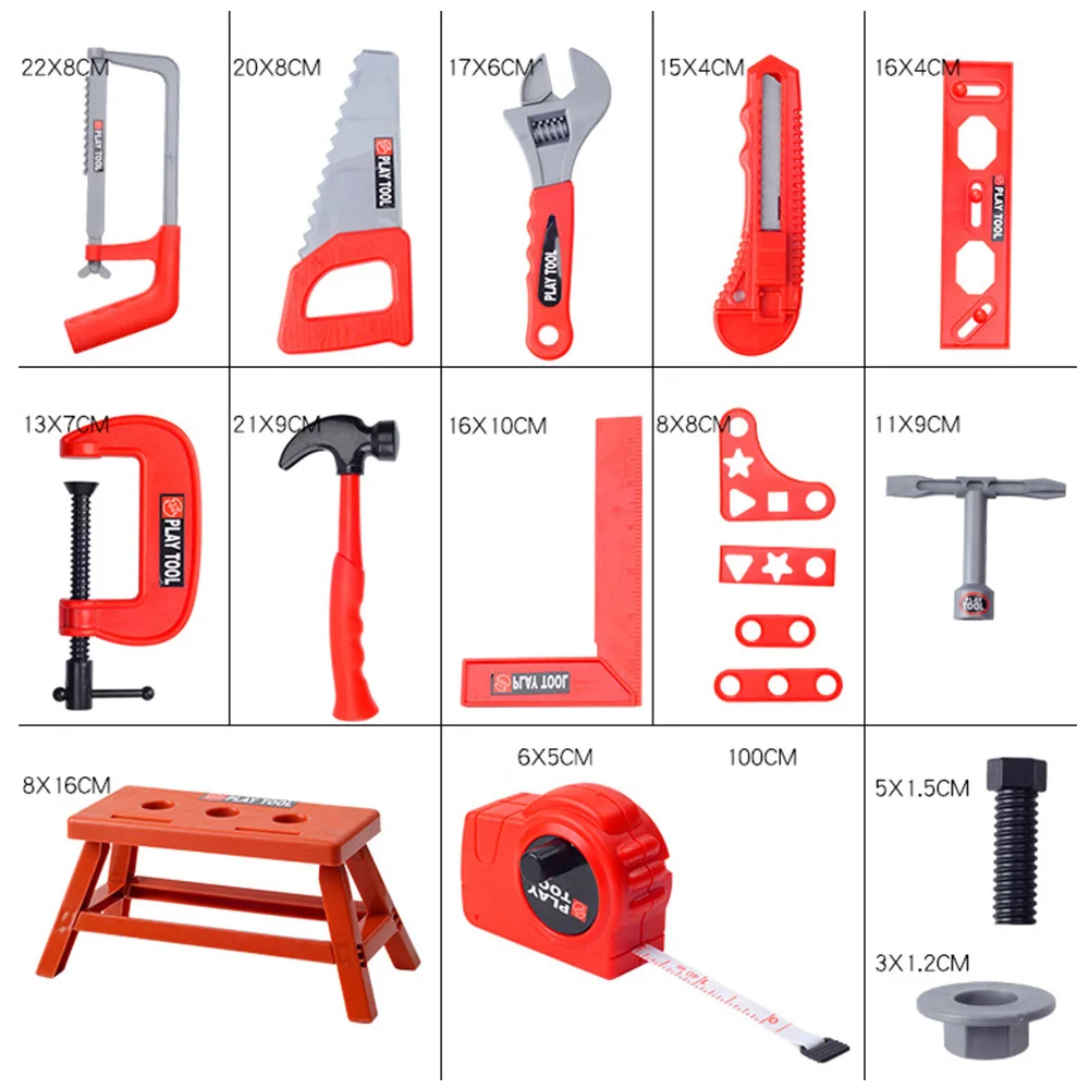 Изготовлен из экологически чистых пластмасс и высококачественных материалов, которые прочны, долговечны и безопасны. С помощью этого забавного набора инструментов для маленьких игрушек дети могут работать над своими воображаемыми проектами, в то время как молотки, распиливание рук и отжимание с собственным детским набором инструментов. Этот набор игрушечных инструментов вдохновляет детей на вопросы и думать о многих проблемах, связанных со строительством, и это поможет им стать более сильным мыслителем. Этот набор игрушек-прекрасный подарок на день рождения, Рождество, День благодарения и т. д. Посылка: 1 набор игрушек
