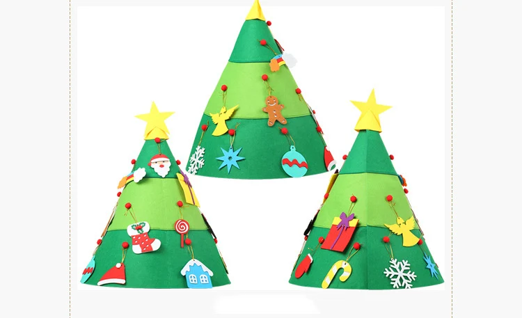 2. Дети выбирают свои любимые украшения! Сделайте дерево в форме конуса, прикрепите фетровый шарик/', а затем Позвольте ребенку свободно вешать украшения на любом месте на дереве.