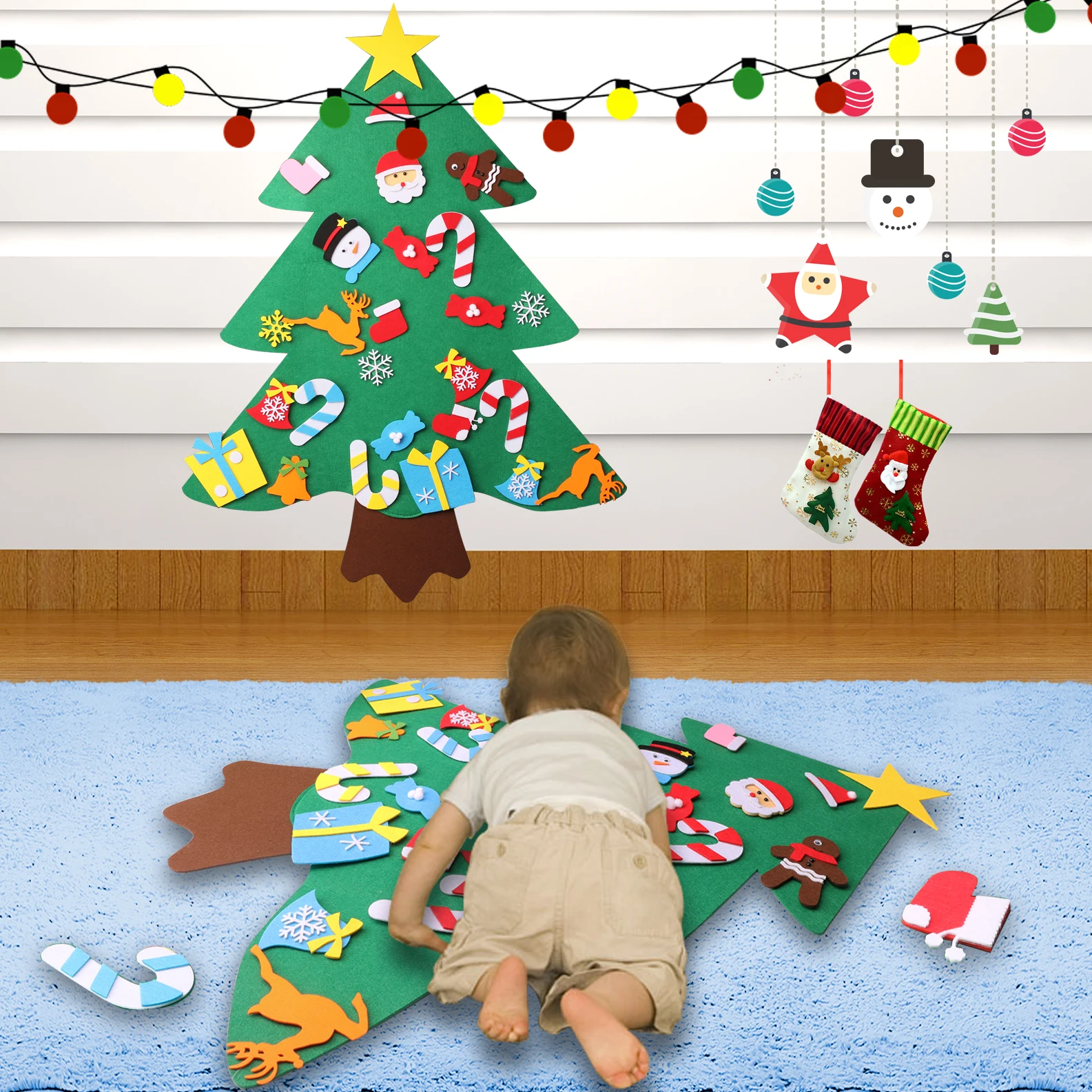 3. Эта фетровая Рождественская елка для детей станет идеальным подарком для вашего маленького малыша на Рождество. Она будет держать вашего малыша занятым в этот сезон. Не только у вас будет достаточно Время, которое вы поможете ему играть самостоятельно, позволяя ему построить рождественскую елку так, как ему нравится. Таким образом, вы позволяете ему построить свои навыки развития, как указано выше Раньше.