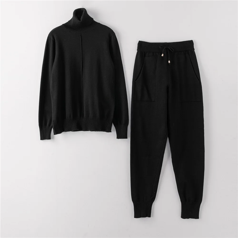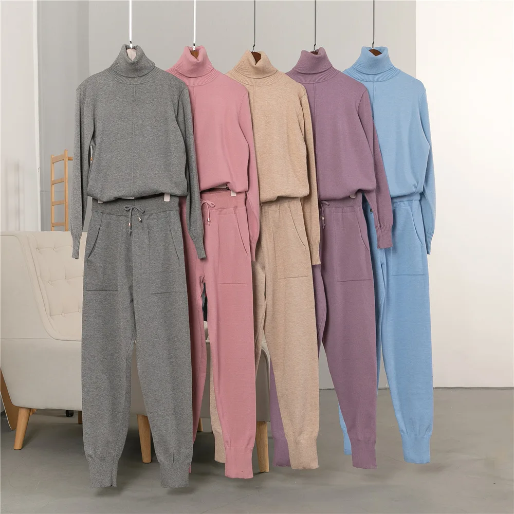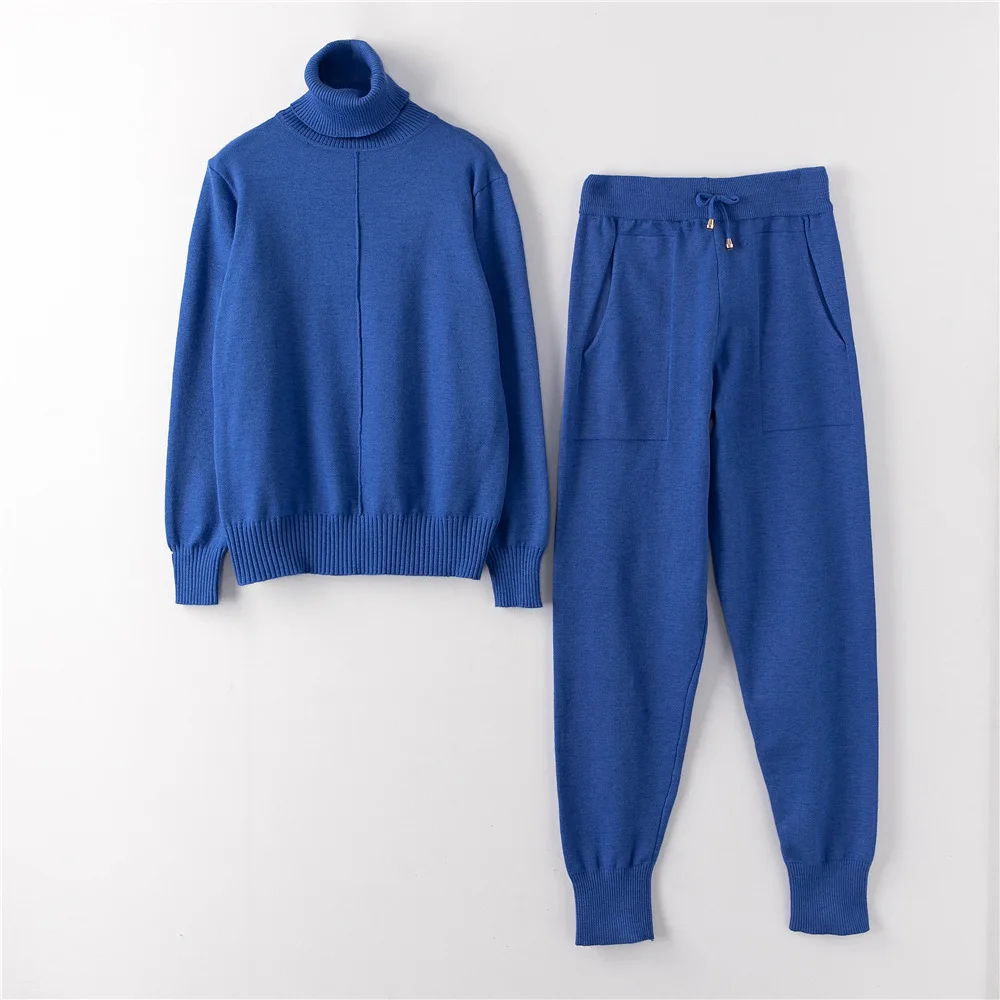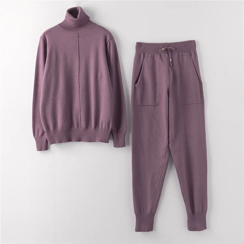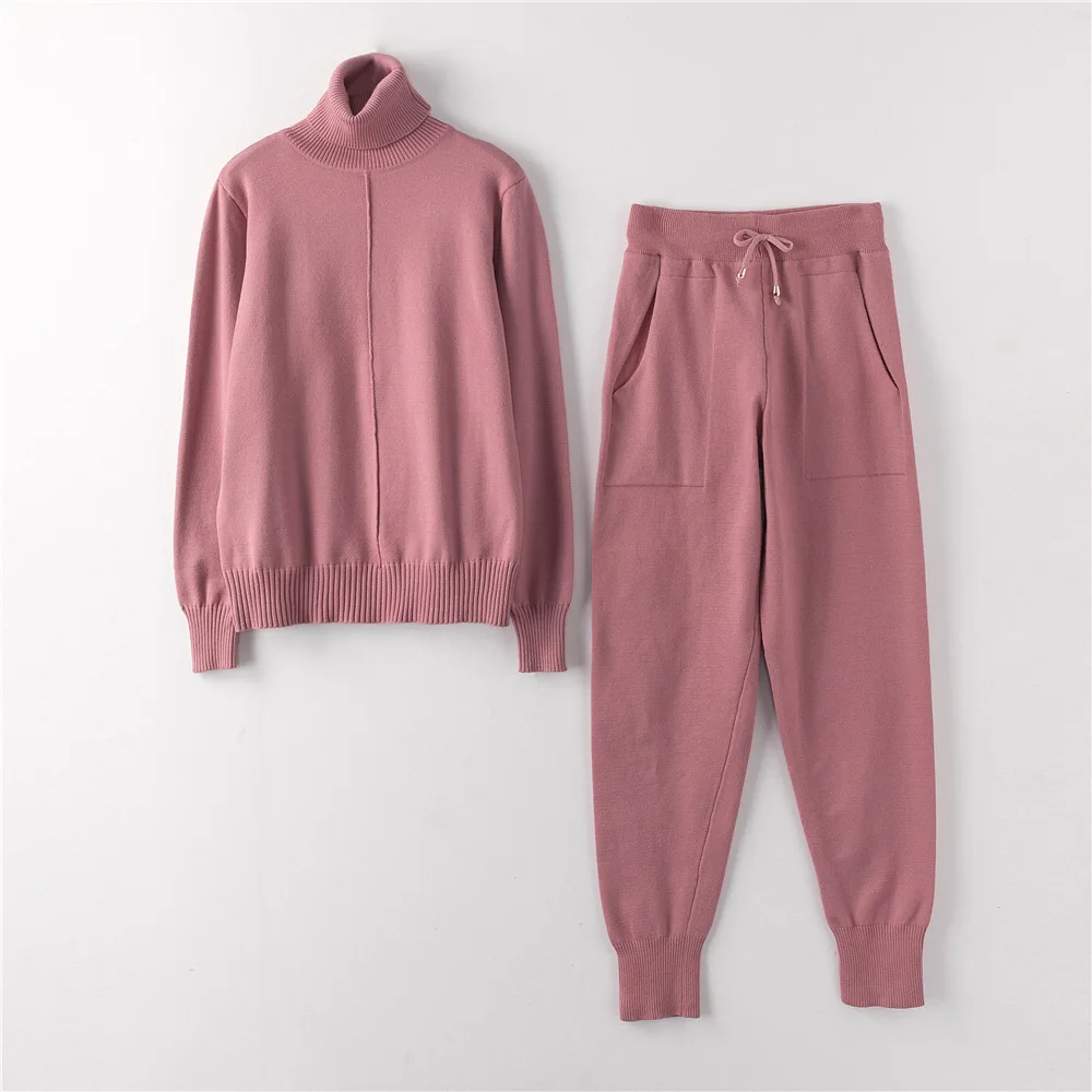 Осенне-зимний вязаный спортивный костюм для женщин 2020, повседневный комплект из 2 предметов, свитер с высоким воротом + вязаные штаны, женский шерстяной костюм Размер (см)БюстДлина верхаРукавДлина брюкТалияБедра Свободный размер88-946062105 100 XS S М L XL 2XL 3XL 4XL 5XL 6XL 7XL