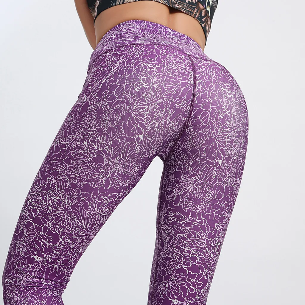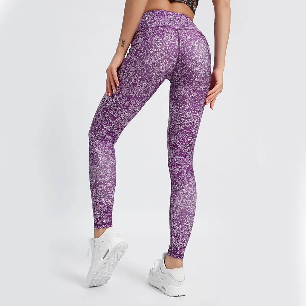 Женские обтягивающие спортивные штаны для йоги с принтом, леггинсы для занятий фитнесом и высокой талией