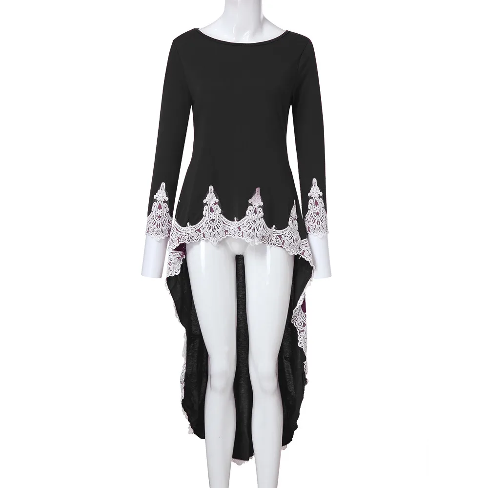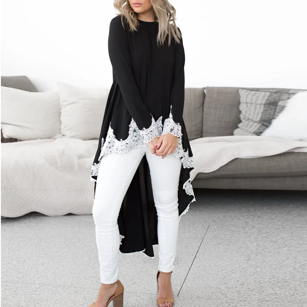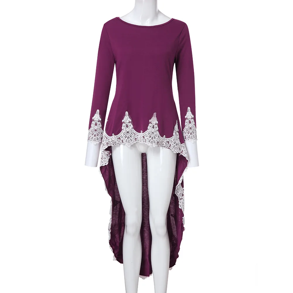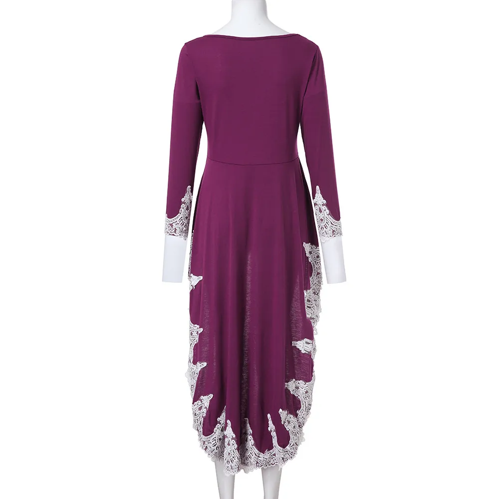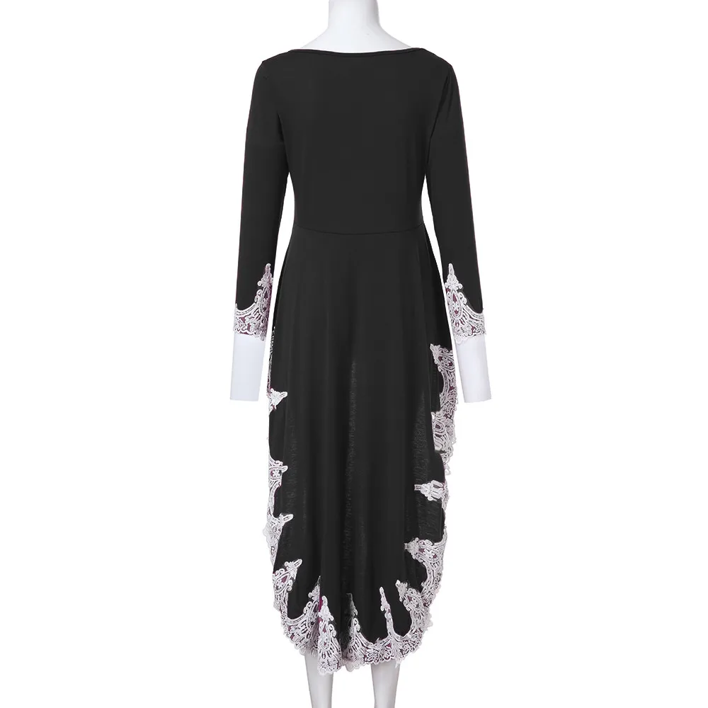Женский Повседневный пуловер с длинными рукавами и круглым вырезом, асимметричное однотонное кружевное платье