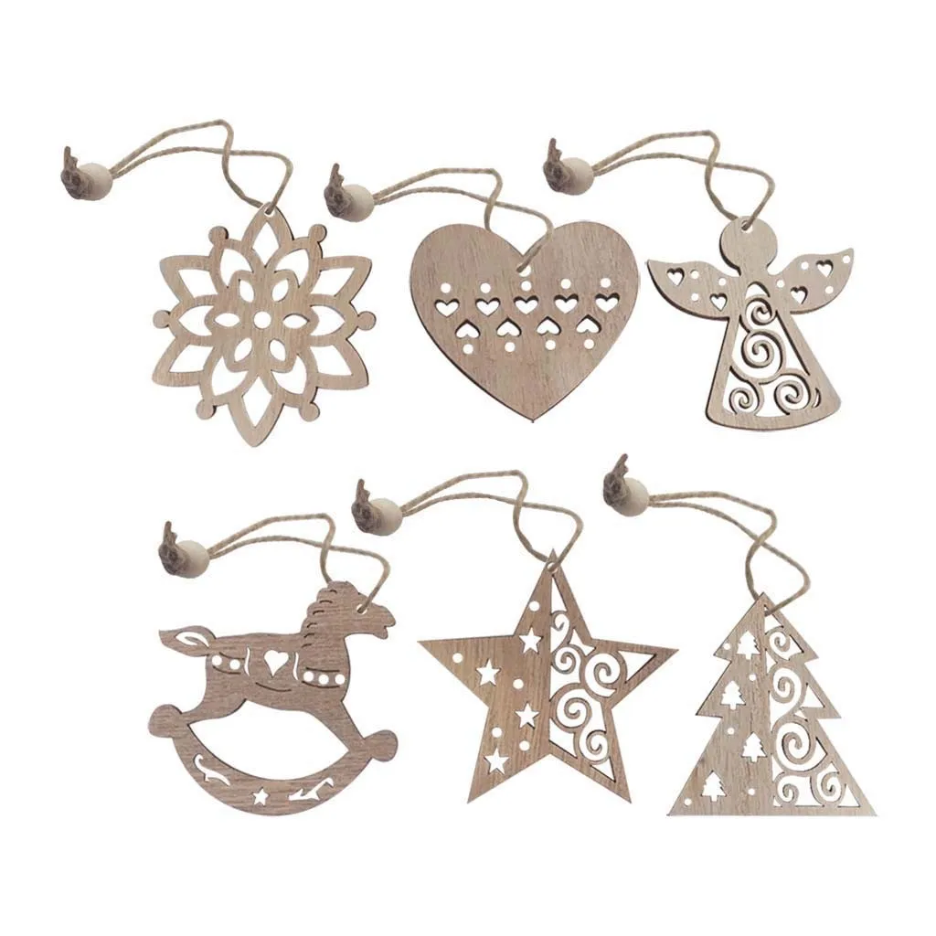 6 шт. рождественские деревянные Подвески Рождественская елка Снежинки Ангел украшения домашний подвесной Декор детские игрушки подарки