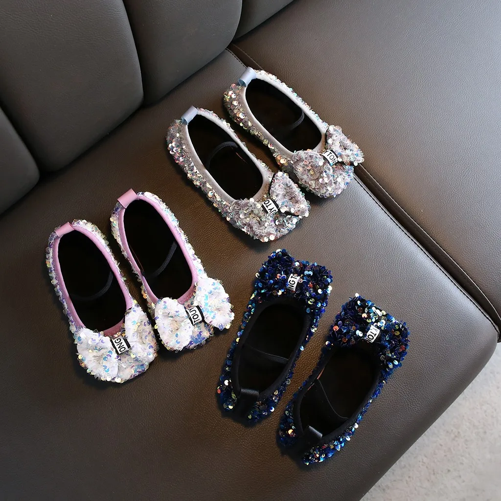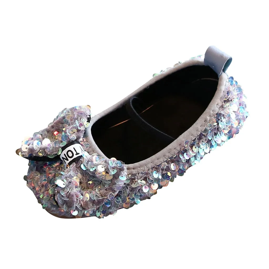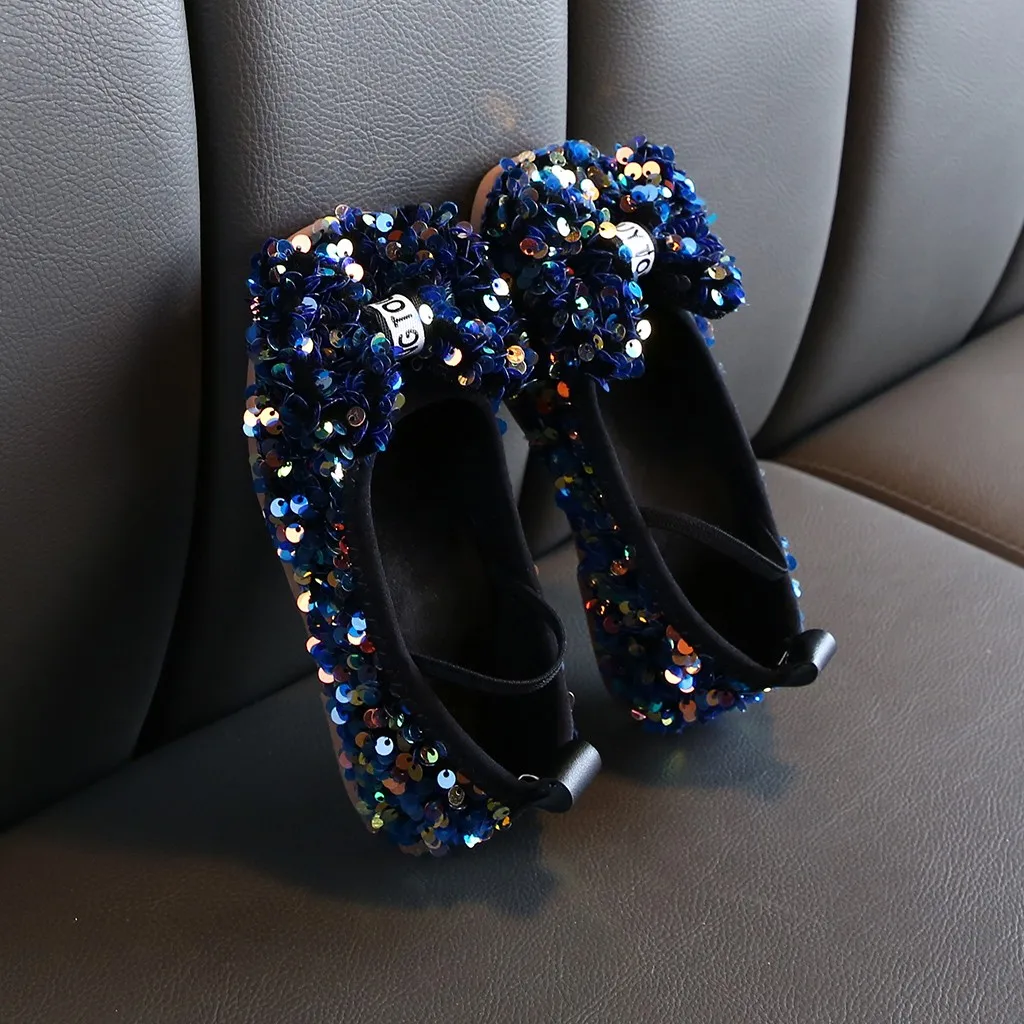 Детские туфли принцессы с блестками и бантом для маленьких девочек