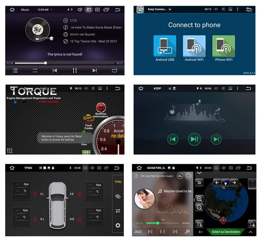 С помощью приложения Easy-Connect, через usb-кабель для зарядки и Bluetooth, вы можете отображать экран телефона android, например, главное меню, фотографии/видео, онлайн-карты navi. Также вы можете управлять телефоном Android на этом устройстве. Поддерживает большинство телефонов Android.
