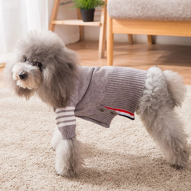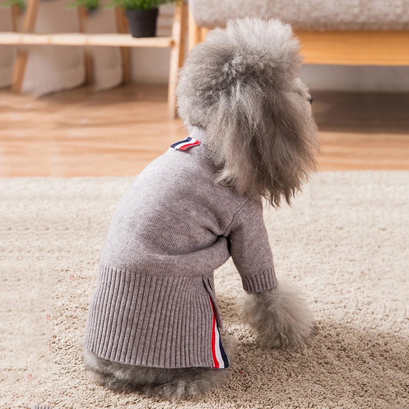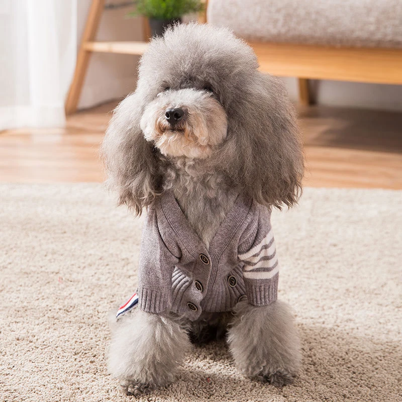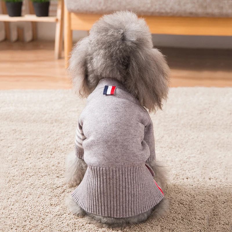 Осенне-зимняя одежда для собак, вязаный свитер в полоску, куртка с хорошей собакой для французского бульдога, модный серый наряд ubranka dla psa 10A